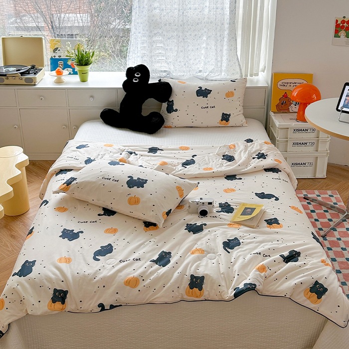 클래스 A 어머니와 유아 학년 여름 쿨 이불 기계 빨 여름 이불 어린이 얇은 이불 봄과 가을 에어컨 이불 콩 섬유 단일 이불