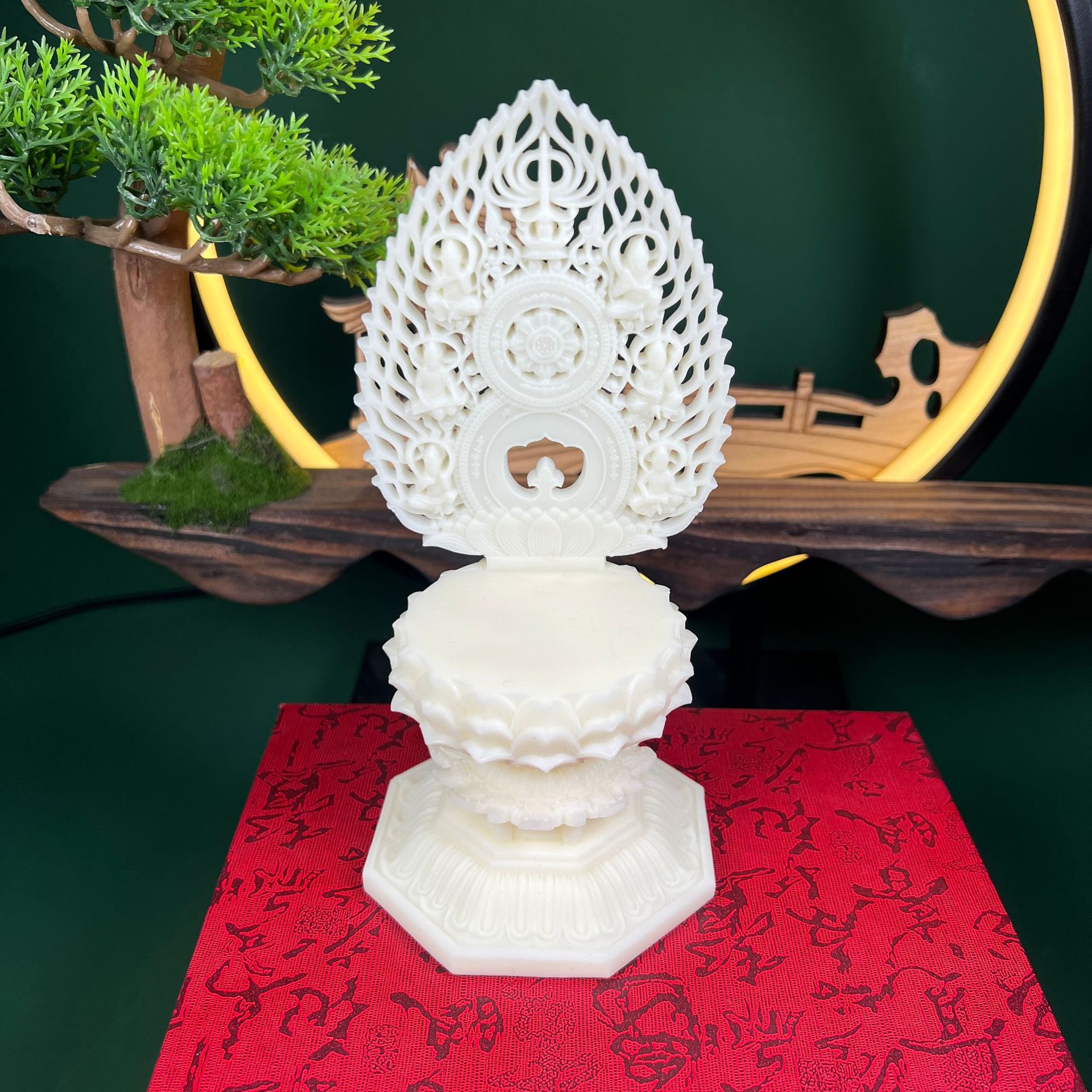 연꽃 받침대 원목 관음불상 받침대 장식품 수제 원형 제단 높이 조절 가능