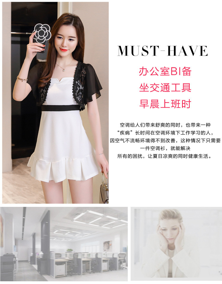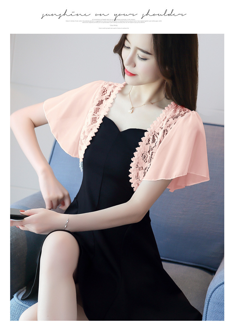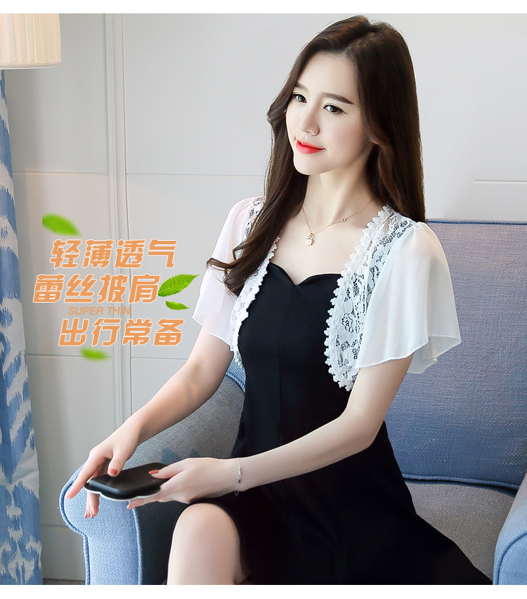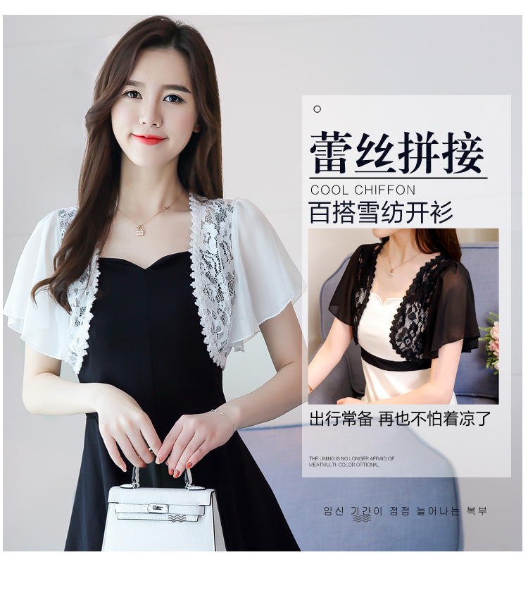 레이스 카디건 여성의 여름 새로운 모든 경기 짧은 쉬폰 탑 숄 재킷 플러스 사이즈 매칭 스커트 조끼스토어 가기