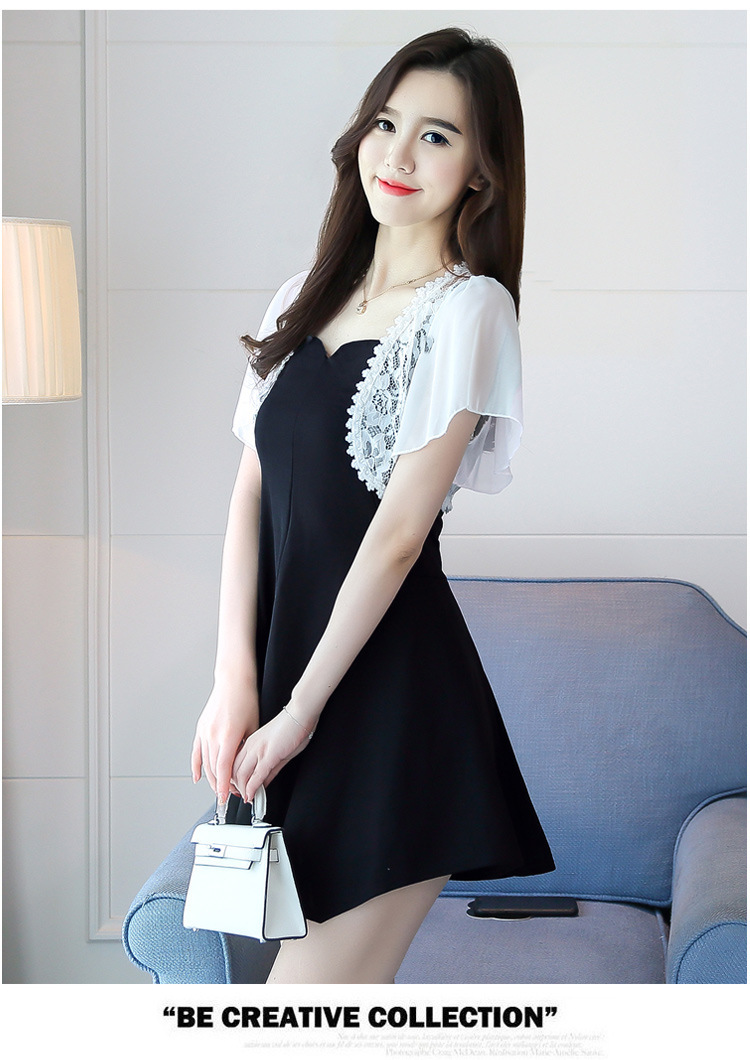레이스 카디건 여성의 여름 새로운 모든 경기 짧은 쉬폰 탑 숄 재킷 플러스 사이즈 매칭 스커트 조끼