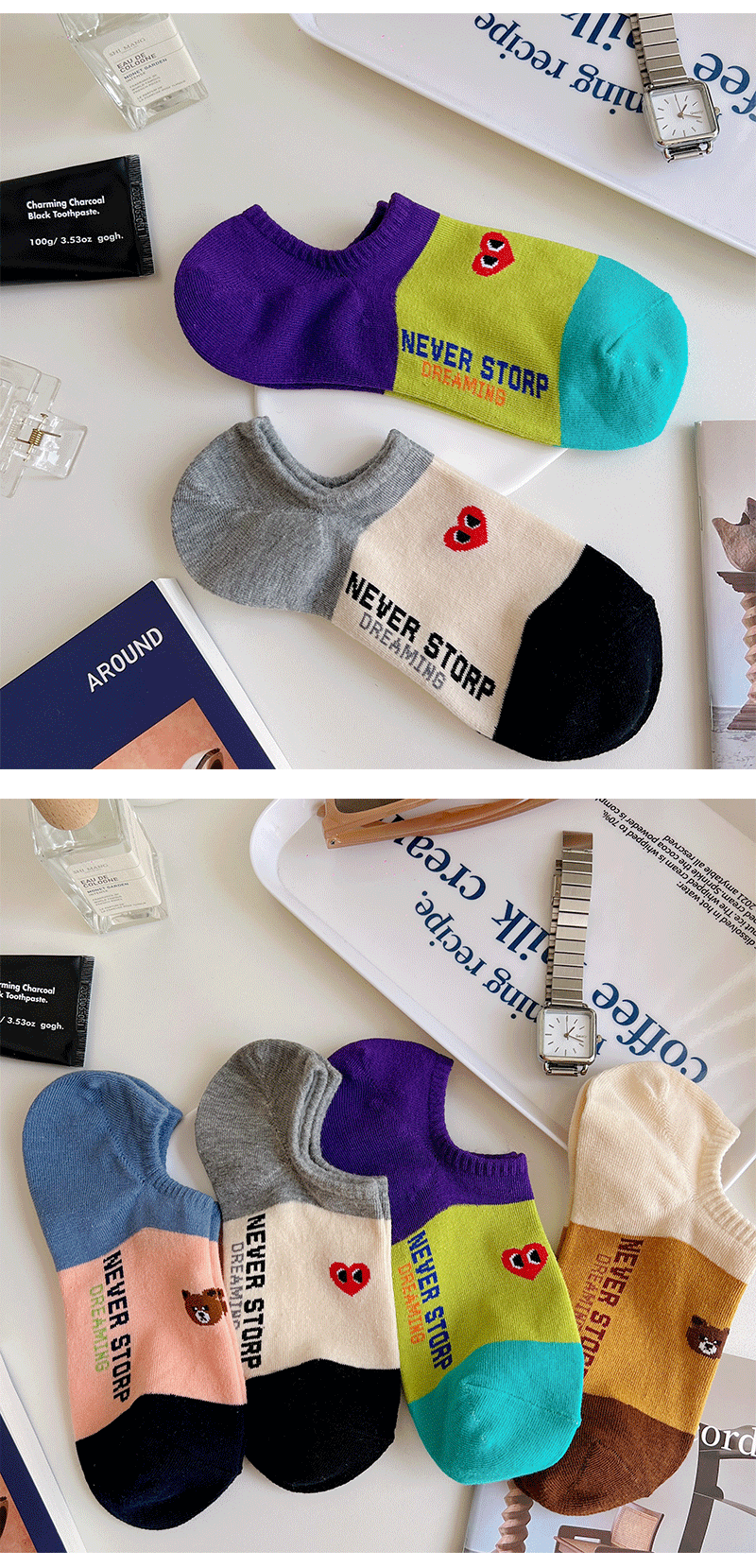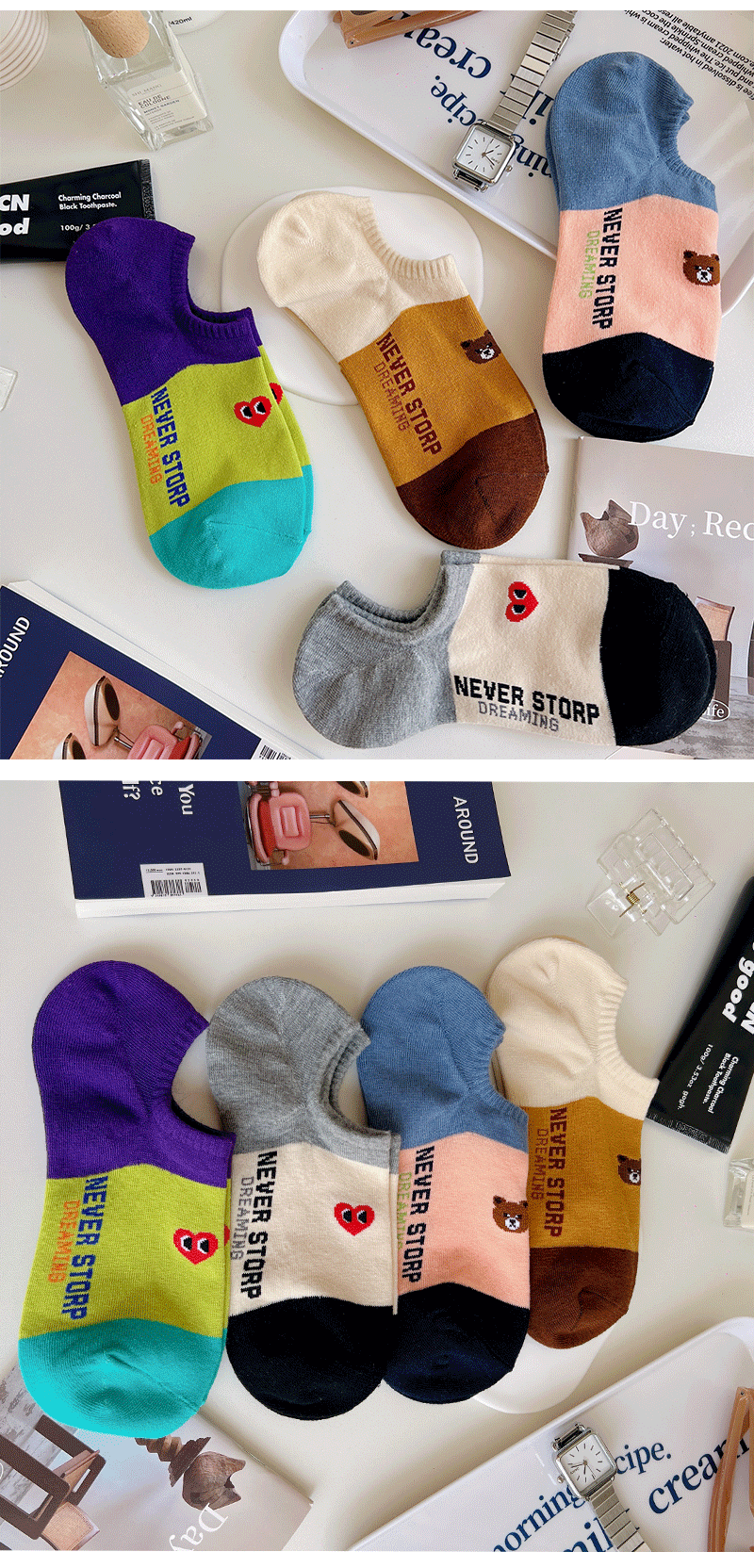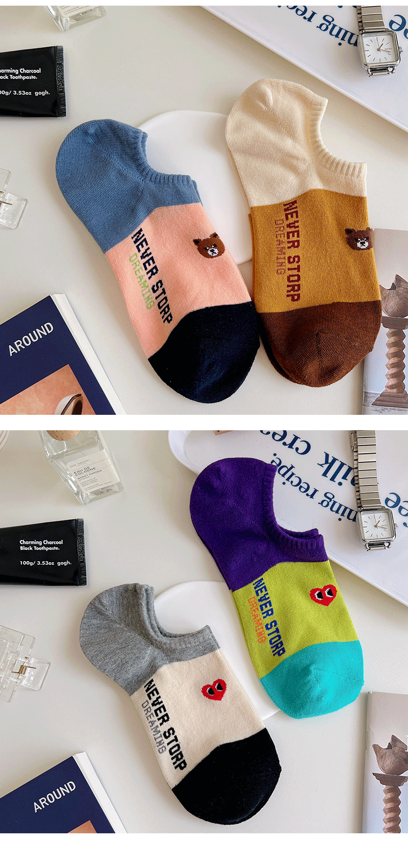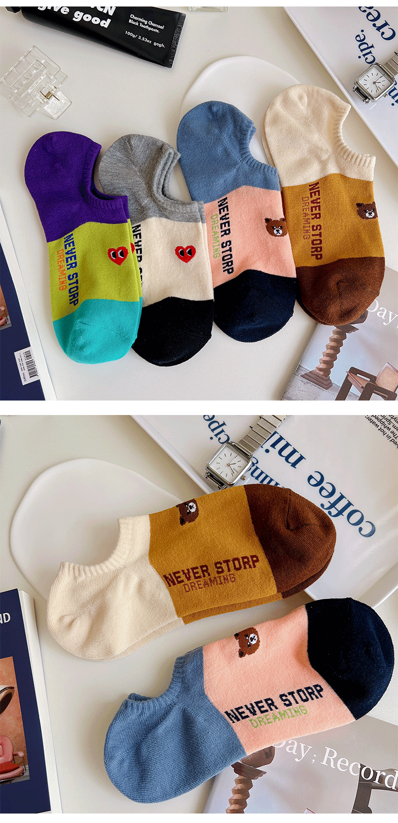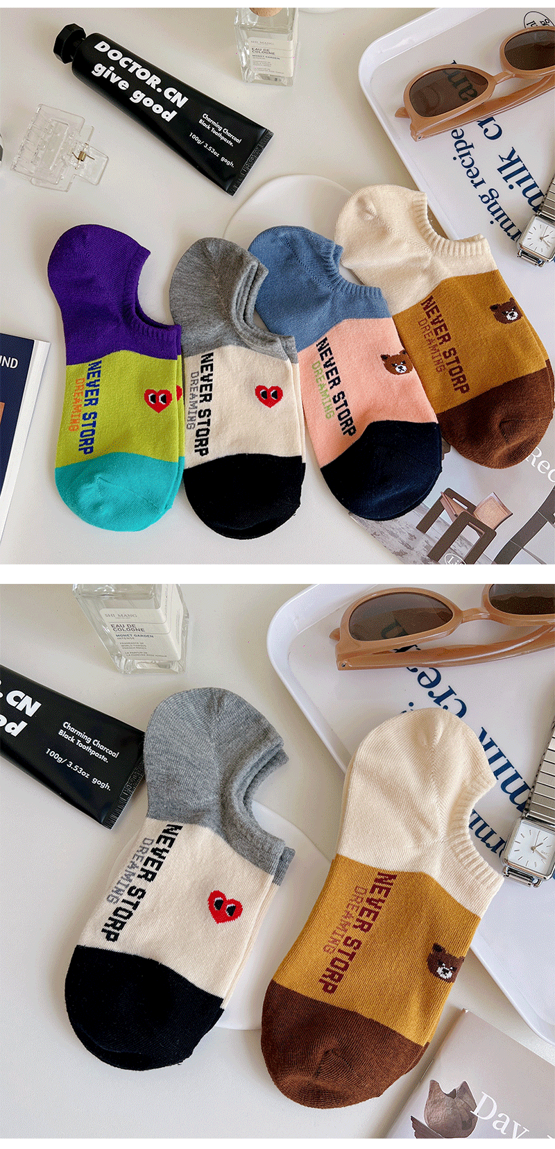 Ji Four 코끼리 양말 여성용 여름 얇은 한국 스타일 곰 보트 양말 빗질 면 동대문 여성 양말 만화 사랑 양말스토어 가기