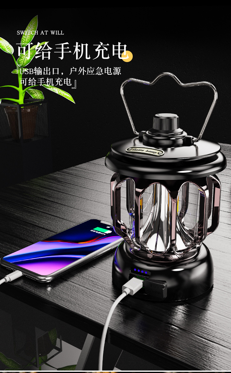 야외 캠핑 조명 분위기 빛 긴 지구력 충전 캠핑 텐트 레트로 조명 말 램프 led 교수형 랜턴