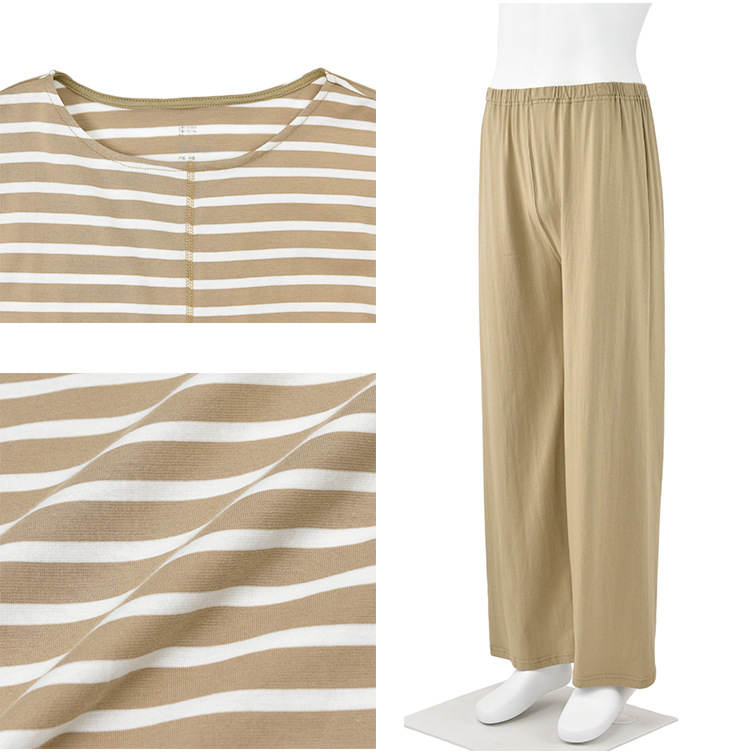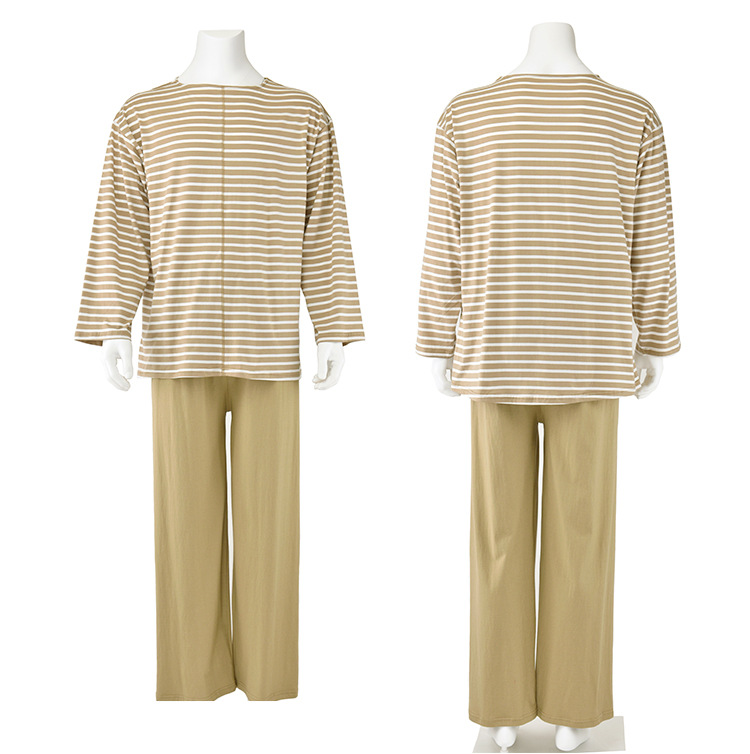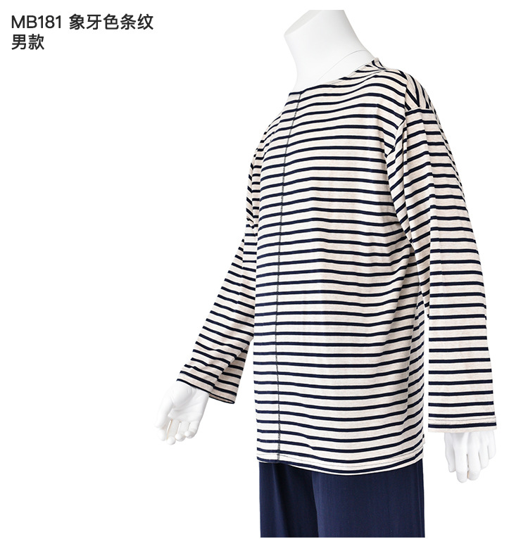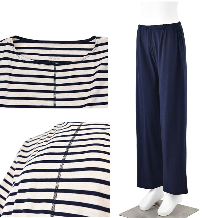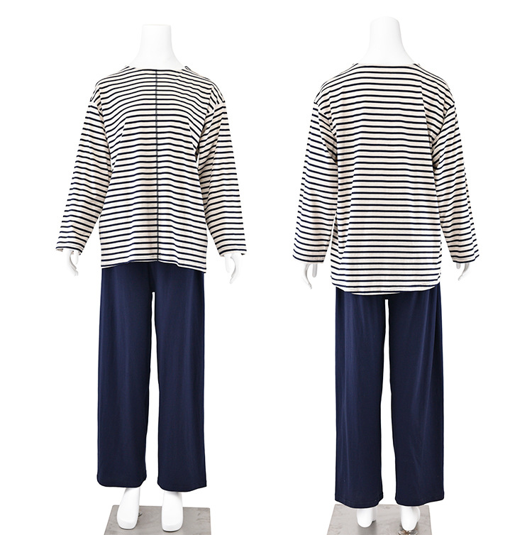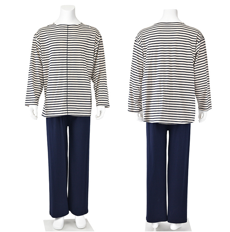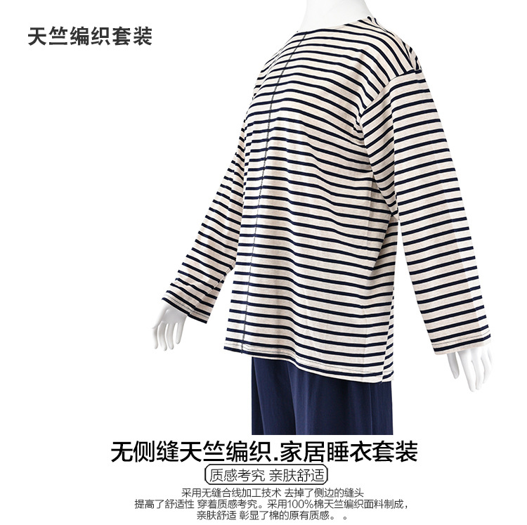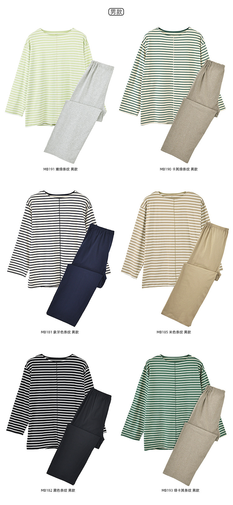 남성과 여성을 위한 일본식 무지 옆면 솔기가 없는 잠옷, 고급 니트 면 홈웨어 세트, 스트라이프 토리코면스토어 가기