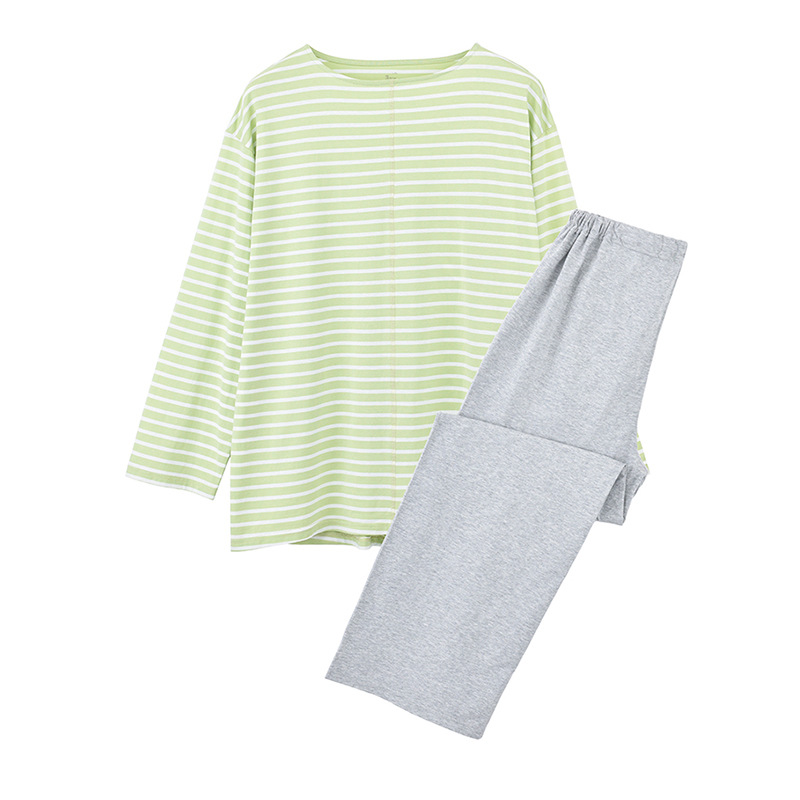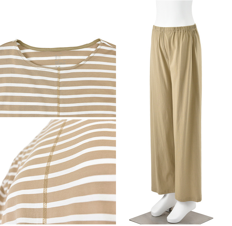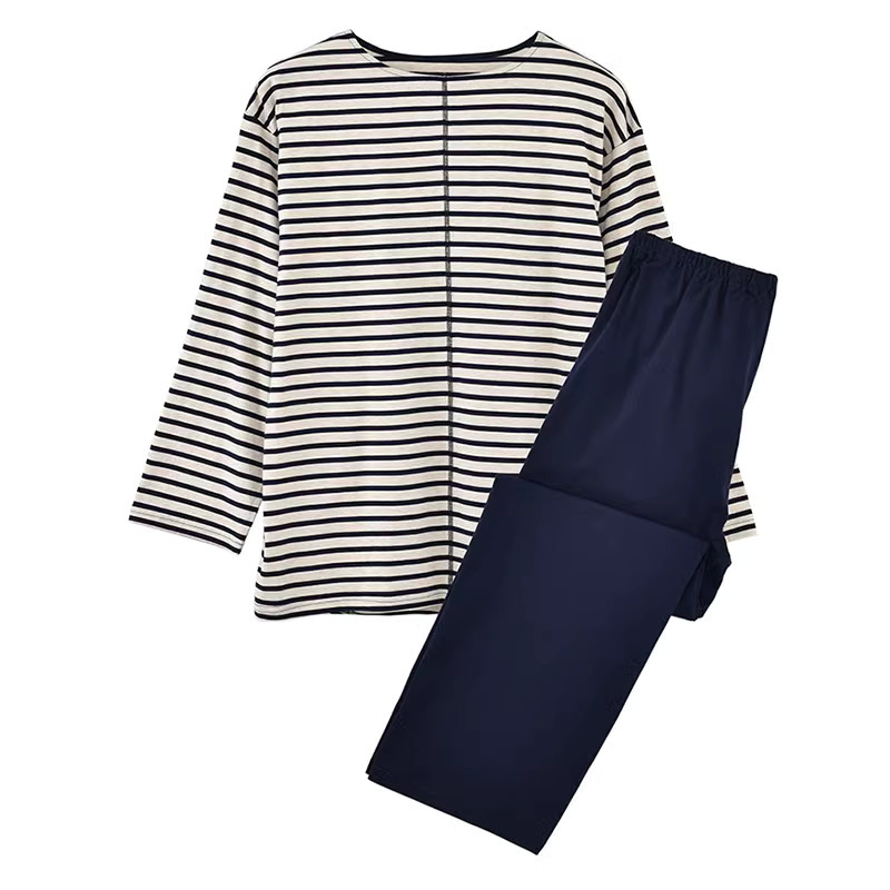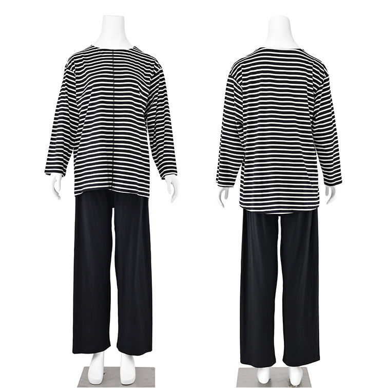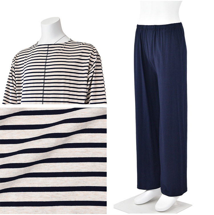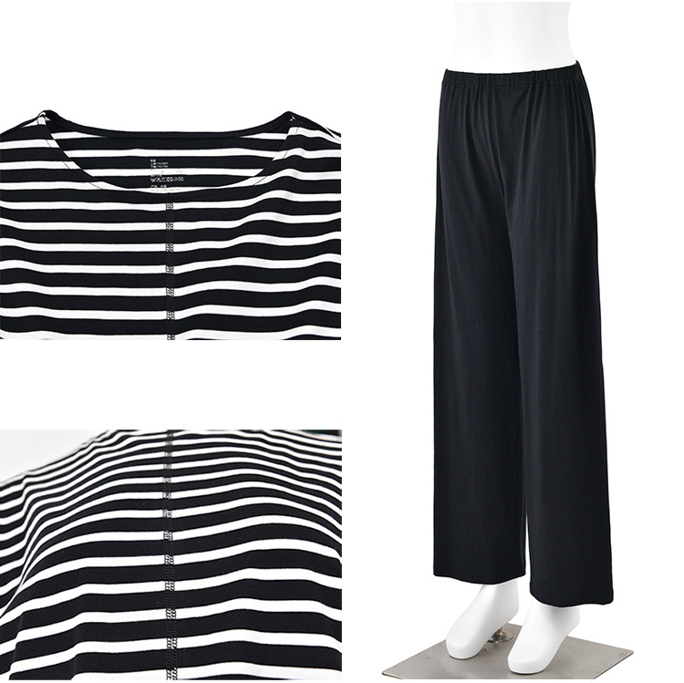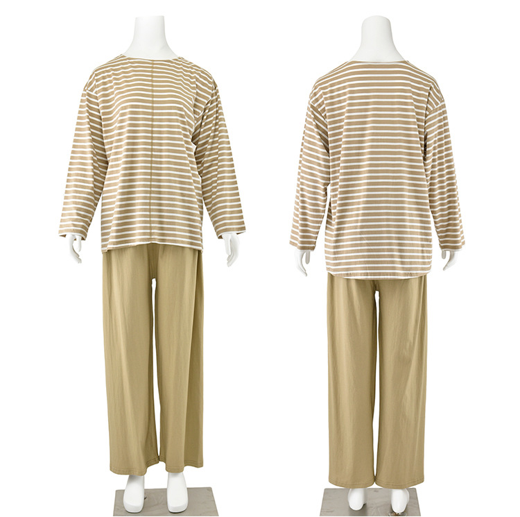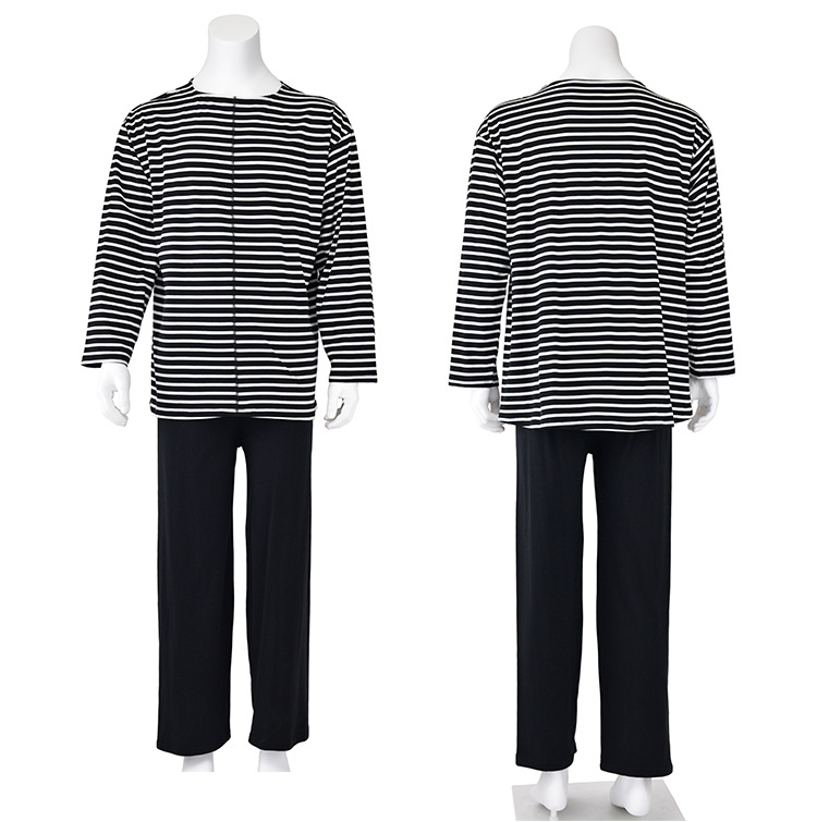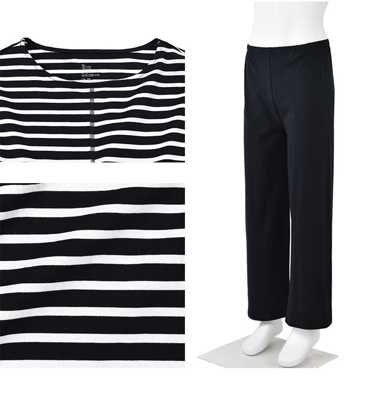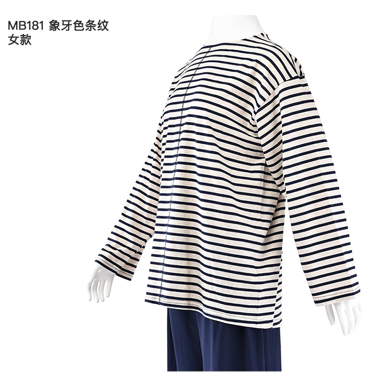 남성과 여성을 위한 일본식 무지 옆면 솔기가 없는 잠옷, 고급 니트 면 홈웨어 세트, 스트라이프 토리코면스토어 가기