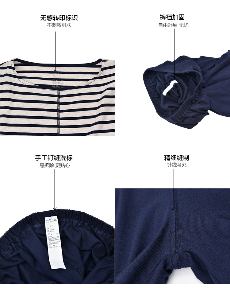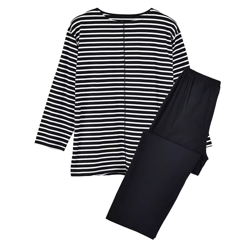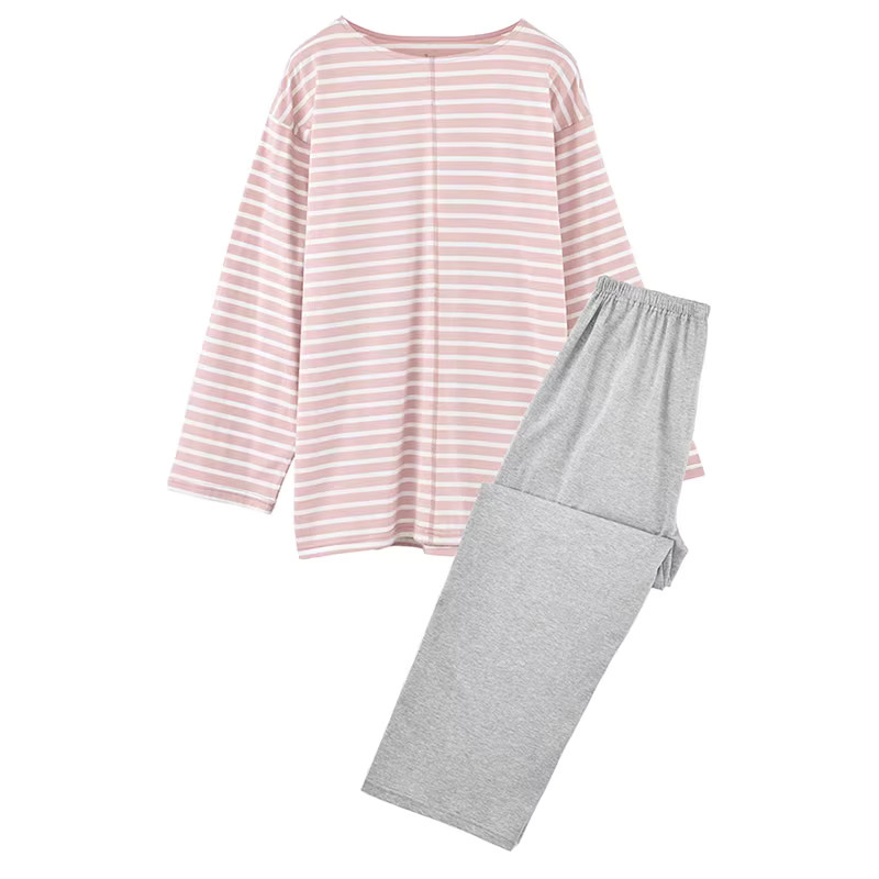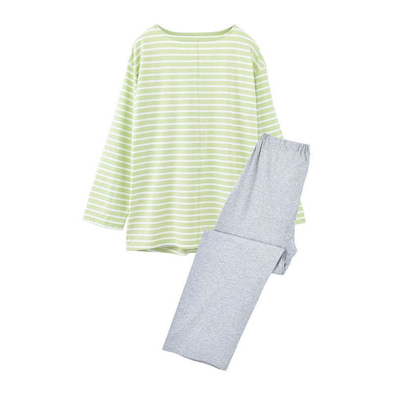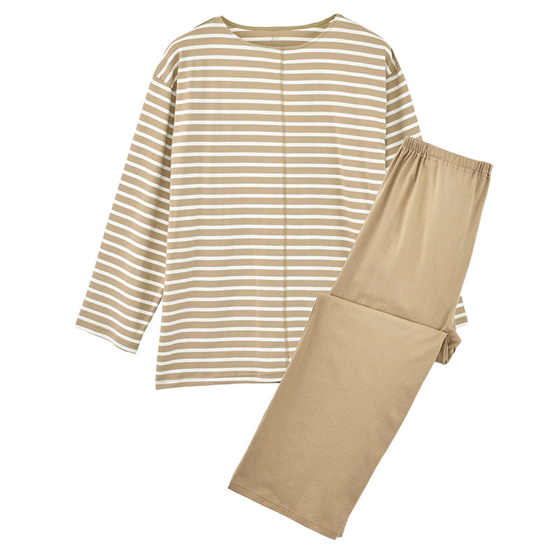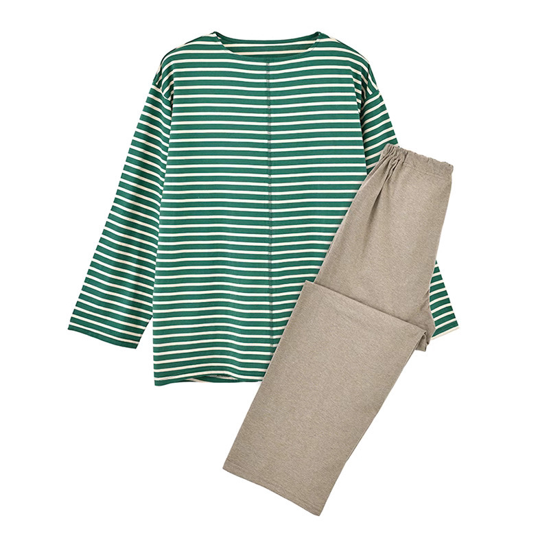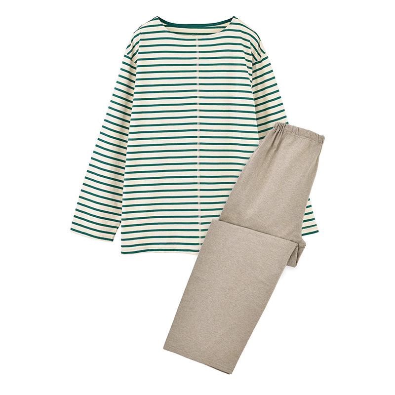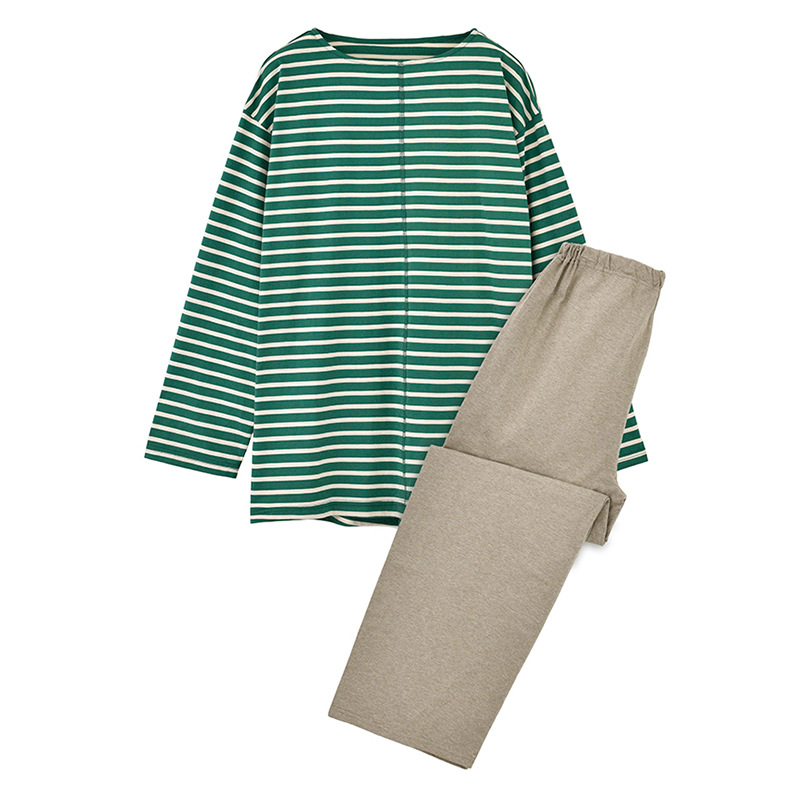 남성과 여성을 위한 일본식 무지 옆면 솔기가 없는 잠옷, 고급 니트 면 홈웨어 세트, 스트라이프 토리코면스토어 가기