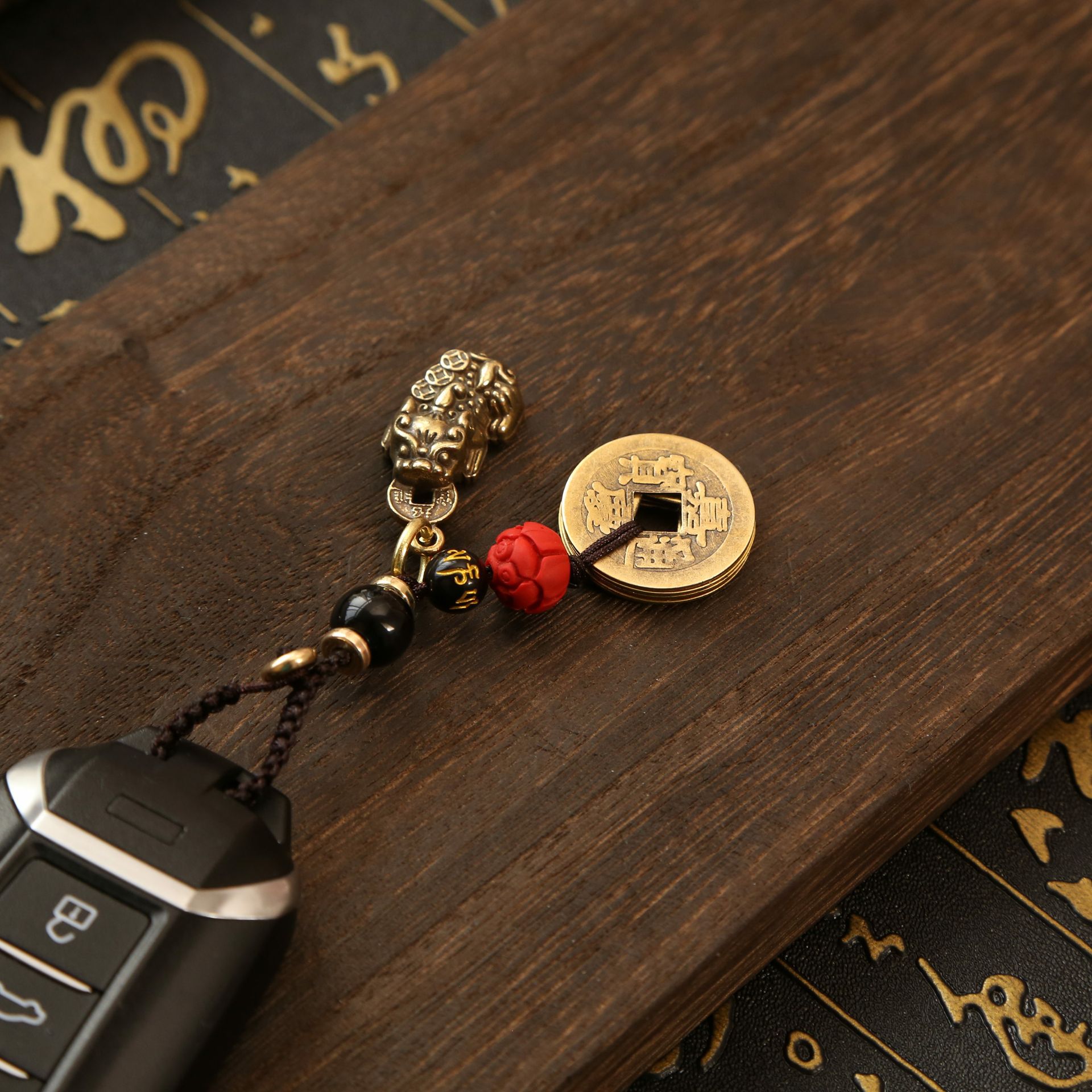 황동 복고풍 토끼 년 행운의 물린 돈 Pixiu 검은 빨강 구슬 다섯 황제 구리 돈 공장 직접 공급 물린 Pixiu에 대해스토어 가기