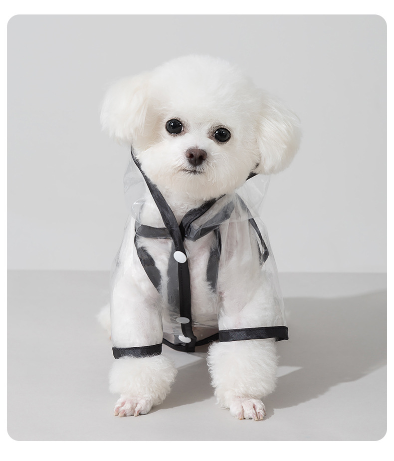 개를위한 검은 테 투명 두 다리 방수 비옷 중소형견 골든 리트리버 판초 테디의 비오는 날 케이프스토어 가기