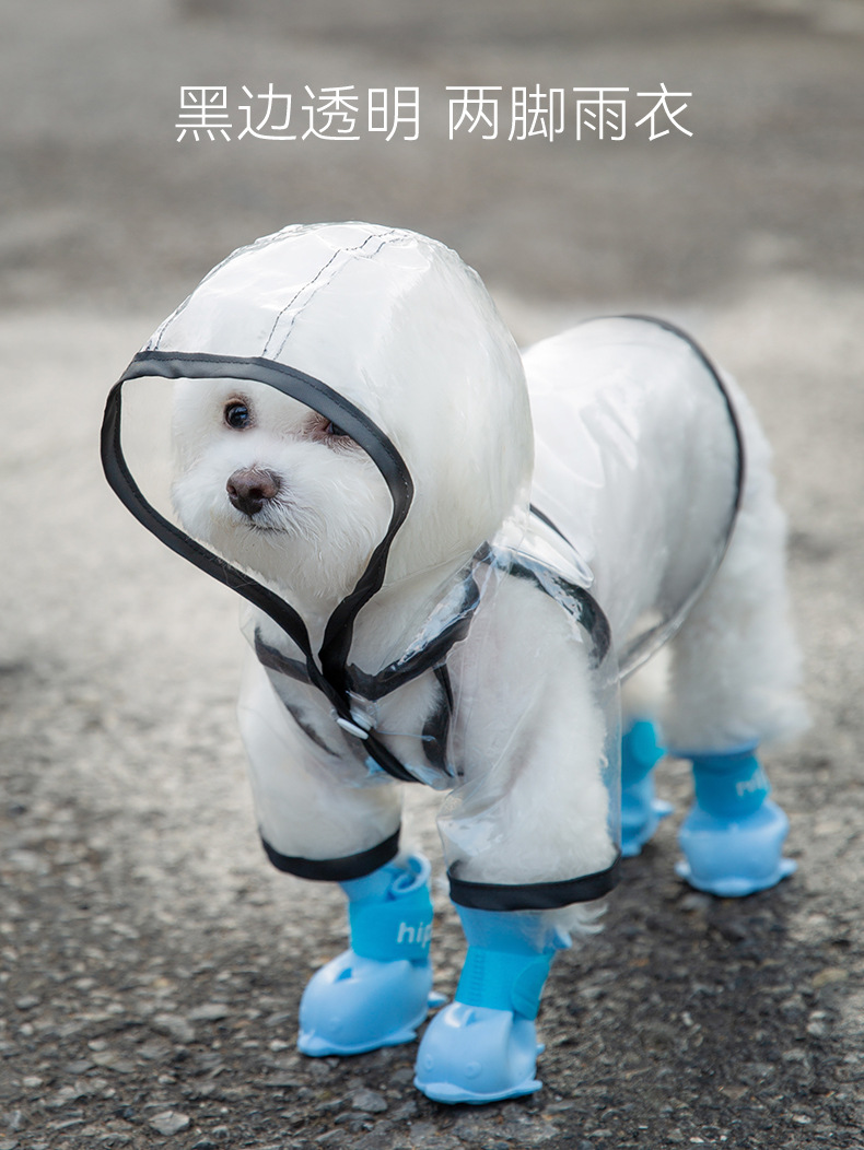 개를위한 검은 테 투명 두 다리 방수 비옷 중소형견 골든 리트리버 판초 테디의 비오는 날 케이프