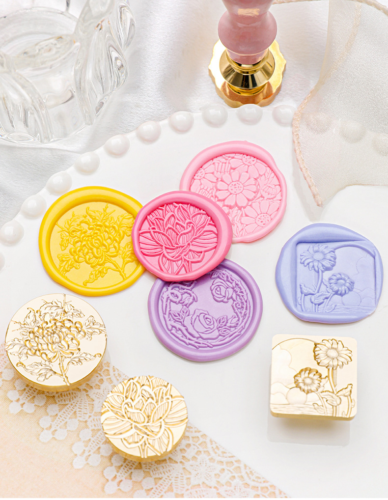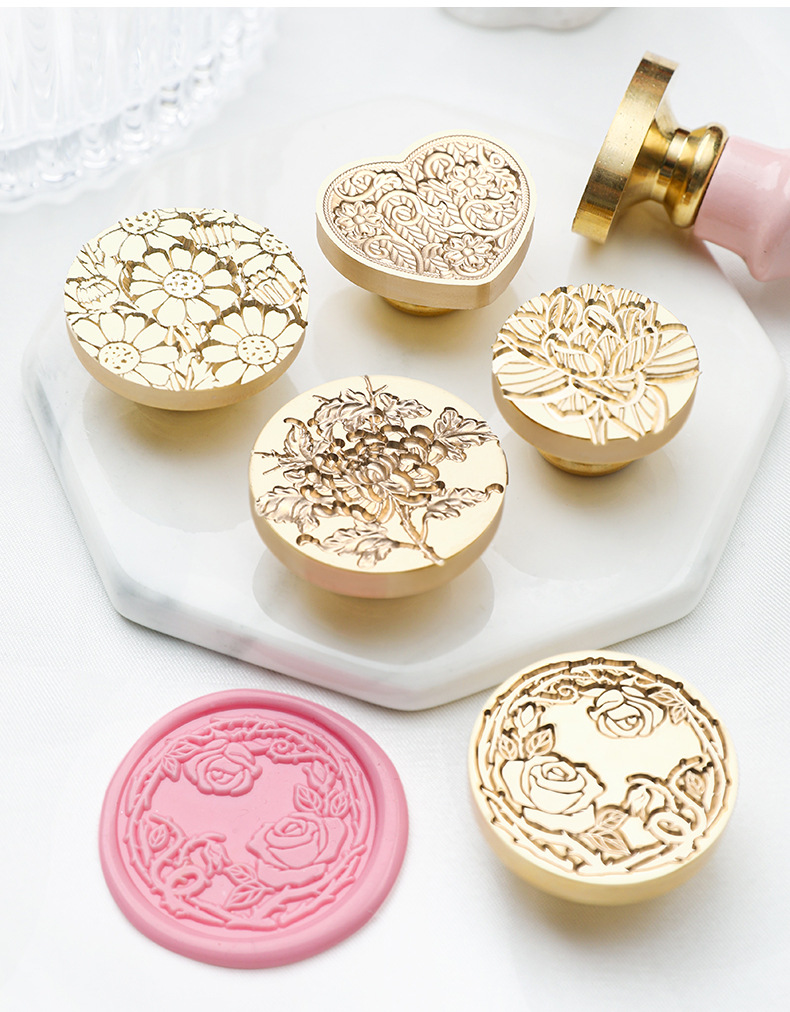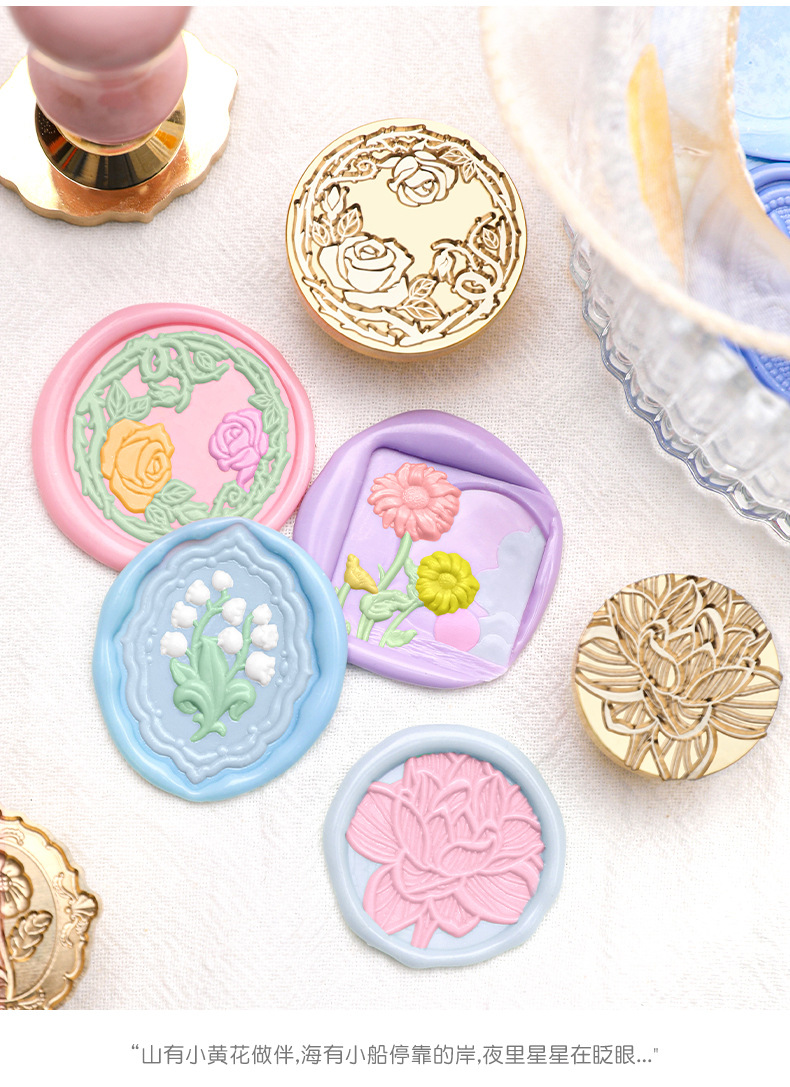新品 浮雕植物花朵系列 火漆印章章头 玫瑰蒲公英郁金香手账铜头