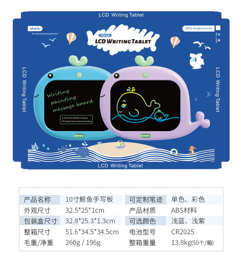 10 인치 고래 만화 LCD 필기 보드 어린이 낙서 드로잉 보드 학생 가정 전자 소형 칠판 필기 보드
