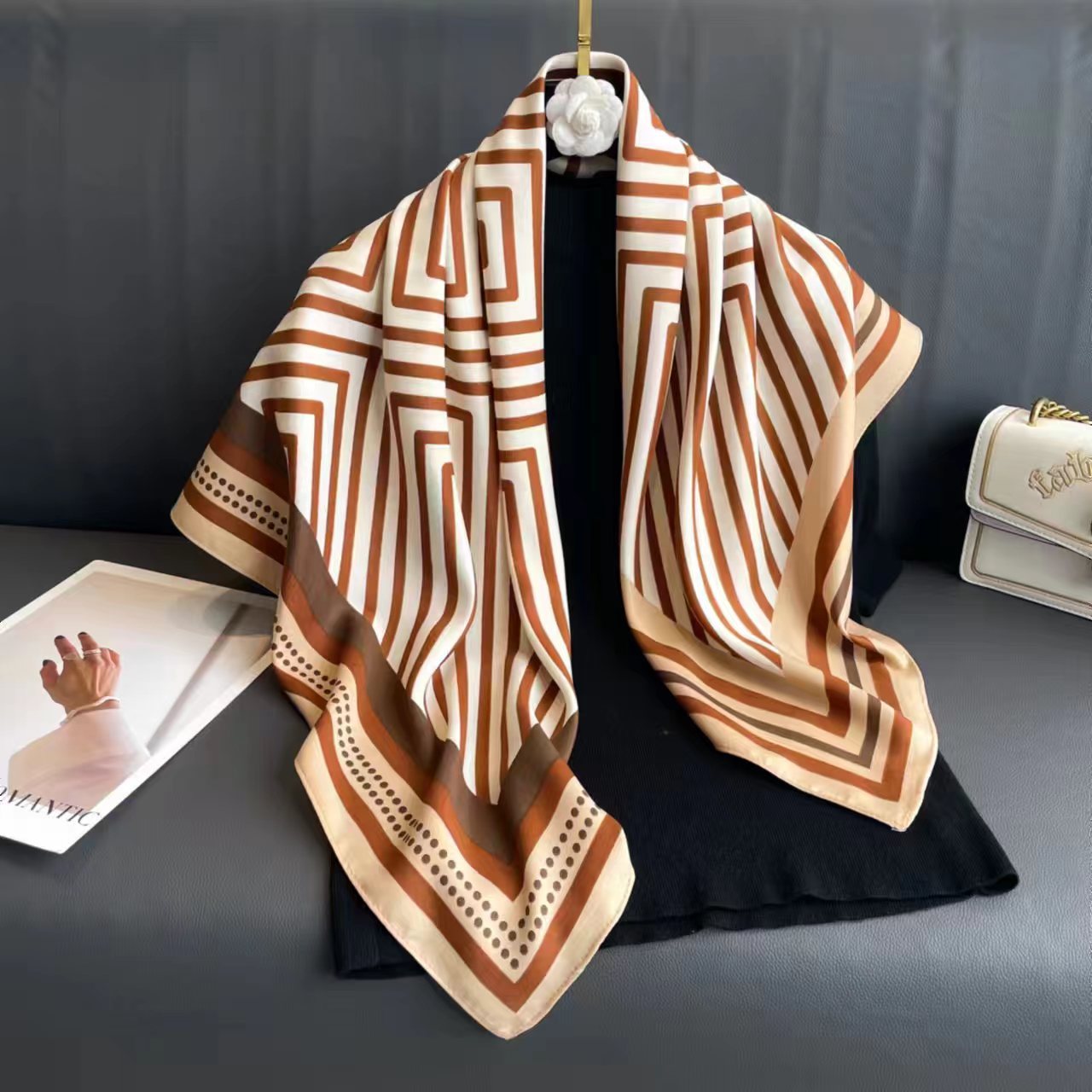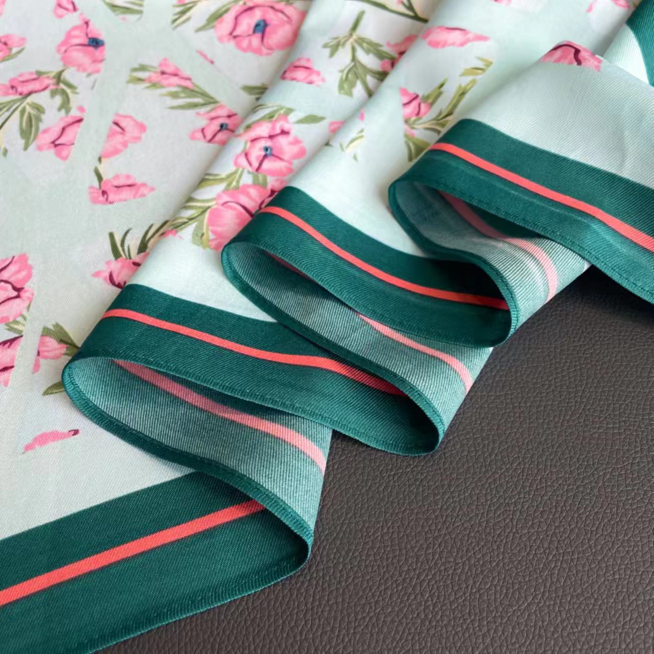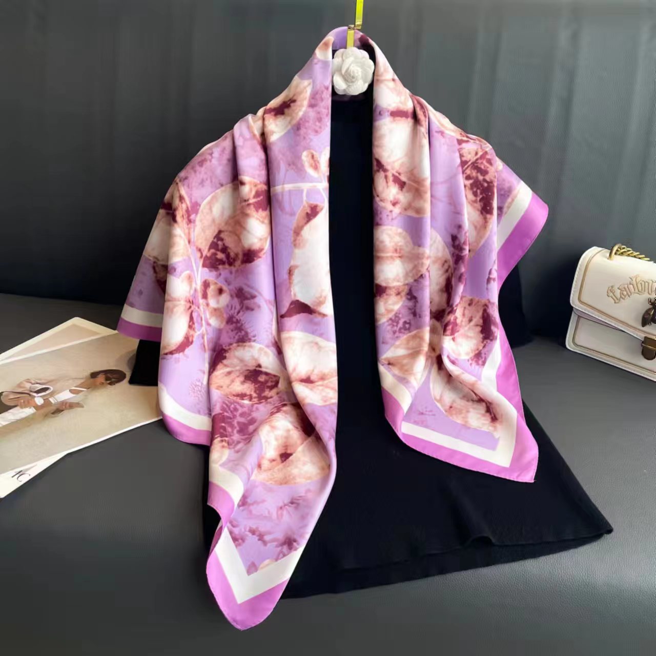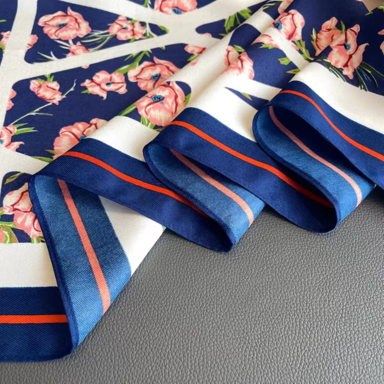 2023 봄 새로운 90 대형 스퀘어 스카프 여성용 우아한 한국식 능직물 실크 패션 패턴 인쇄 실크 스카프 장식 스카프