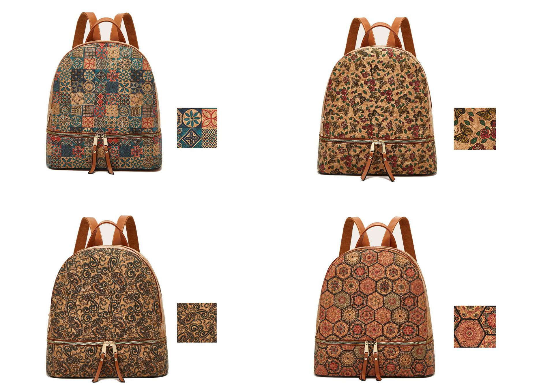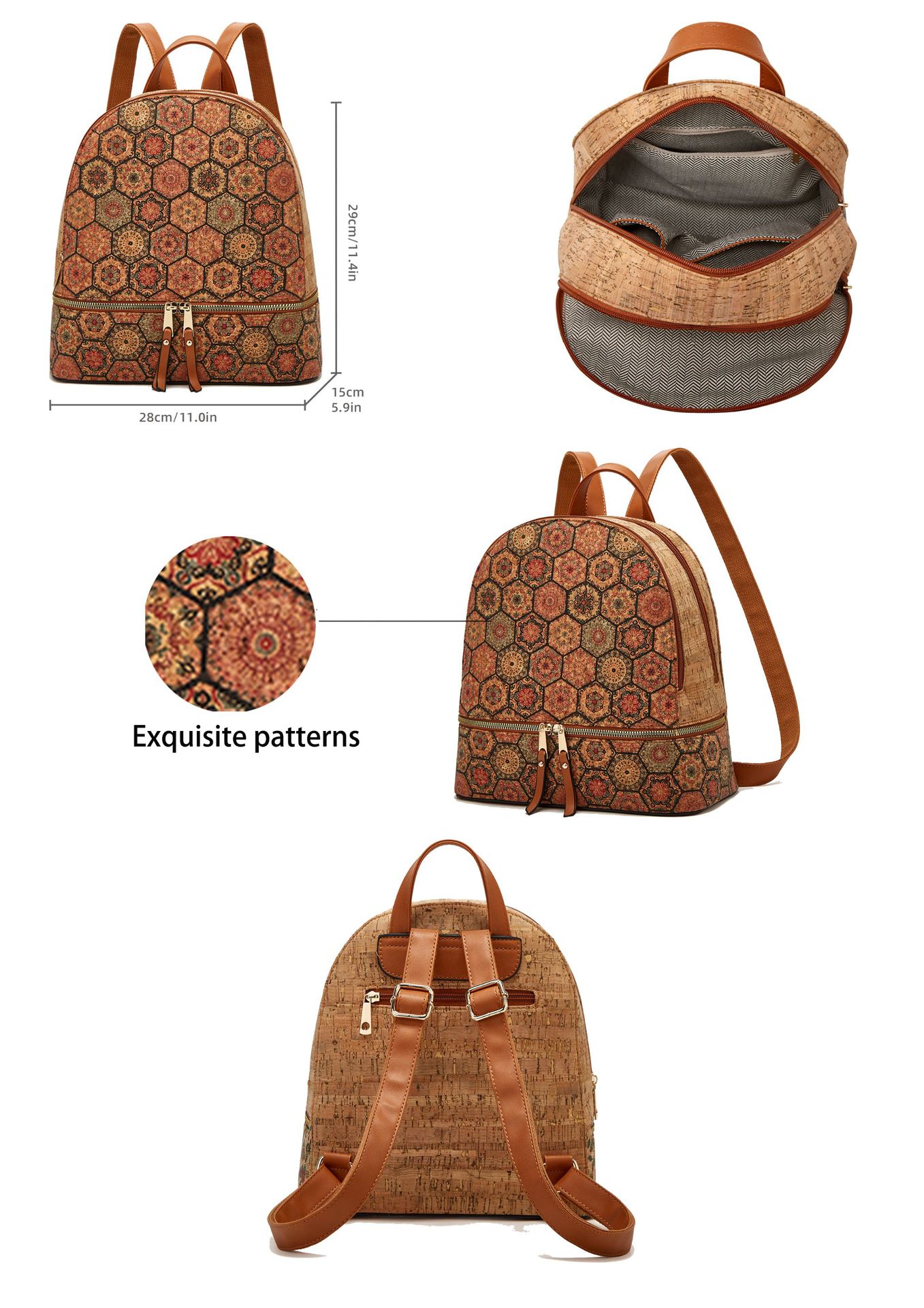 국경 간 2025 새로운 패션 맞춤형 대용량 배낭 여성 나무 껍질 인쇄 민족 스타일 배낭 도매