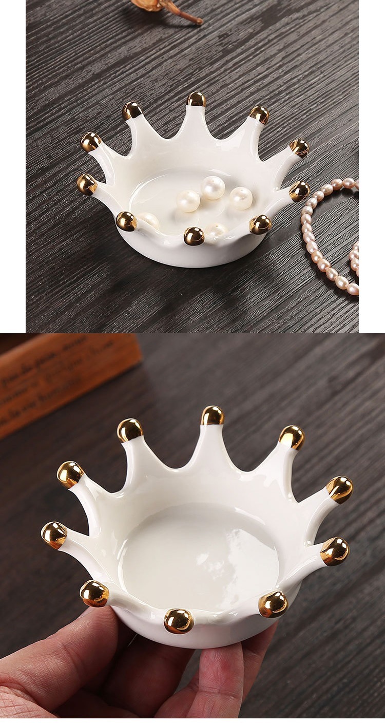 북유럽 라이트 럭셔리 스타일 크라운 세라믹 쥬얼리 플레이트 링 보관 유럽식 저장 플레이트 홈 장식 장식