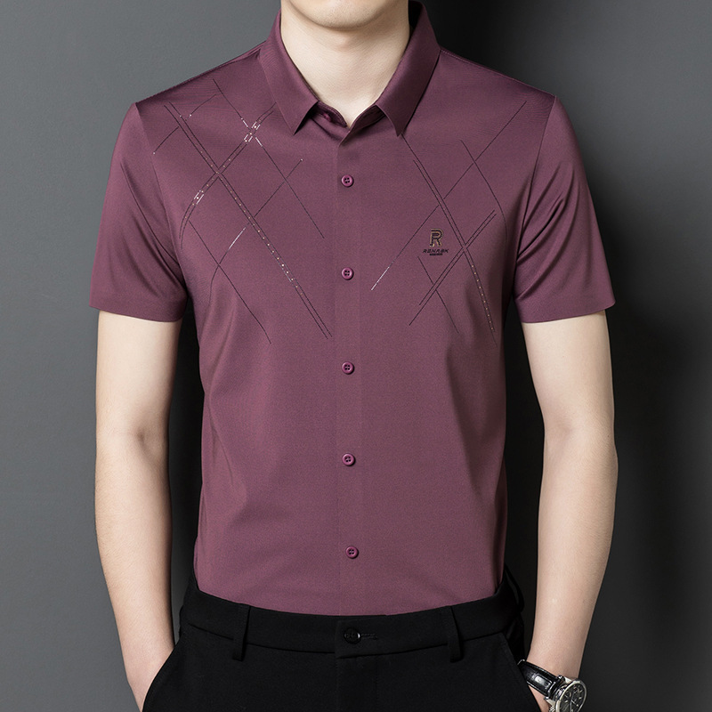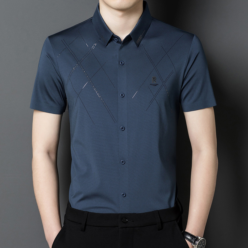 2022夏装新款翻领男式衬衫韩版时尚都市舒适休闲中青无痕衬衣开衫