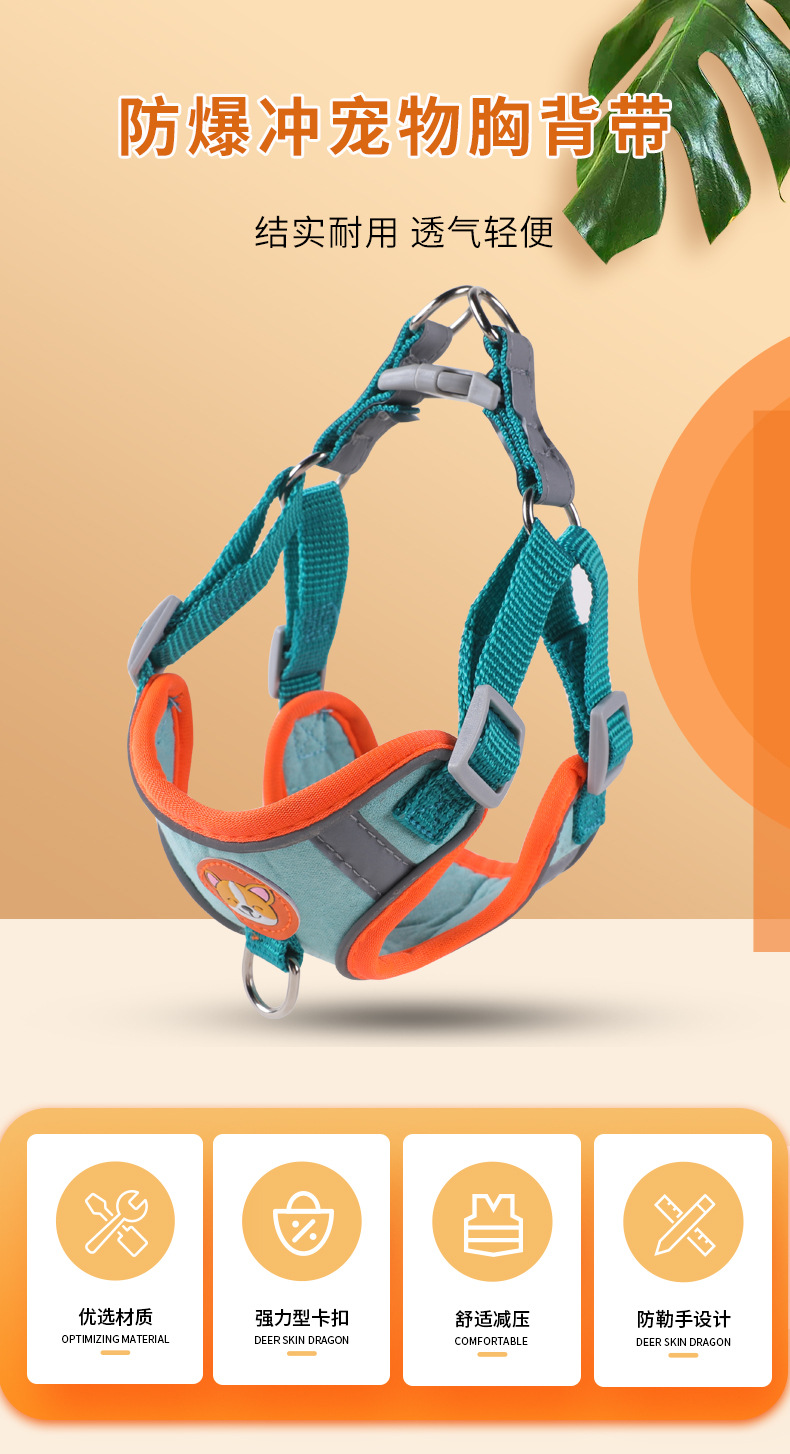 개 가죽 끈 소형 및 중형 반사 애완 동물 가슴 스트랩 안티 브레이크 개 산책 고양이 가죽 끈 애완 동물 용품