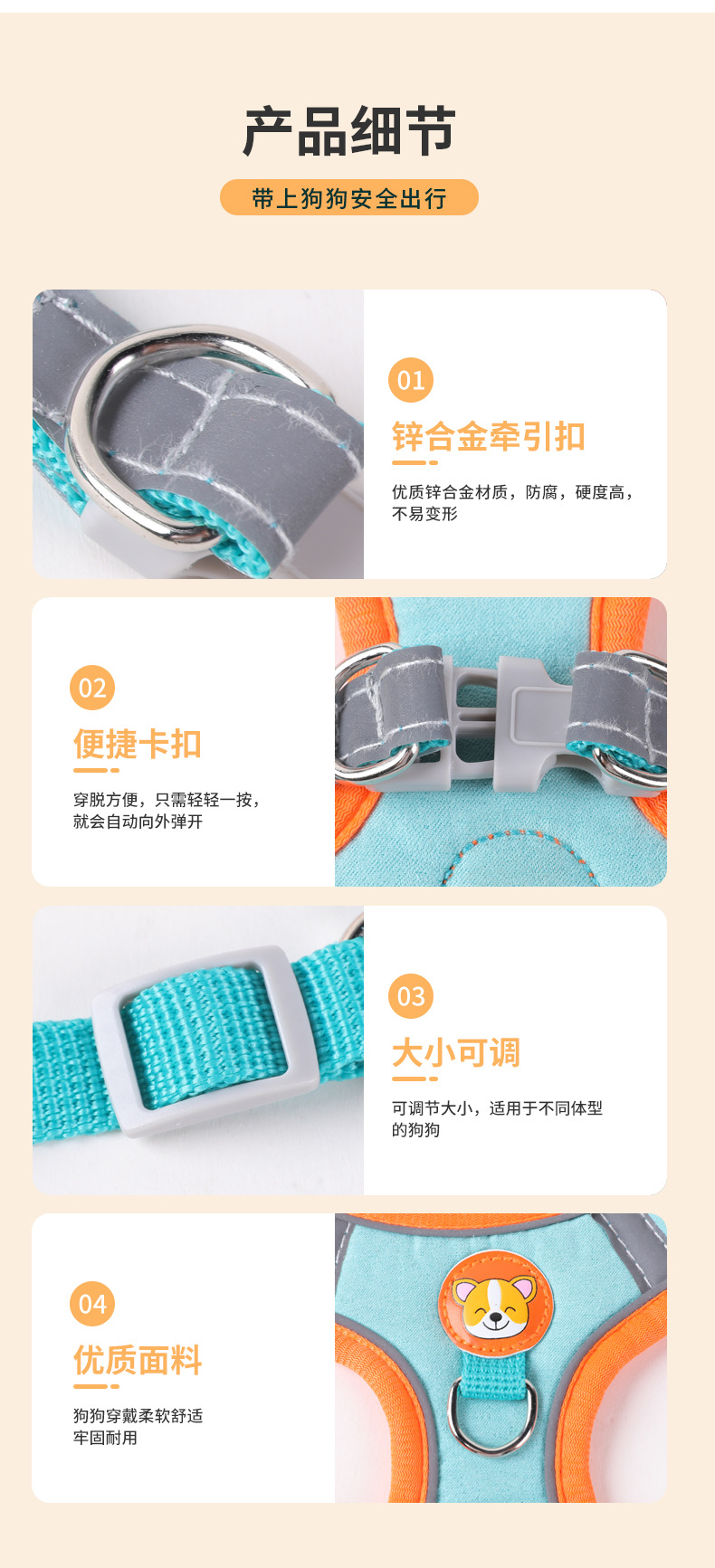 개 가죽 끈 소형 및 중형 반사 애완 동물 가슴 스트랩 안티 브레이크 개 산책 고양이 가죽 끈 애완 동물 용품스토어 가기