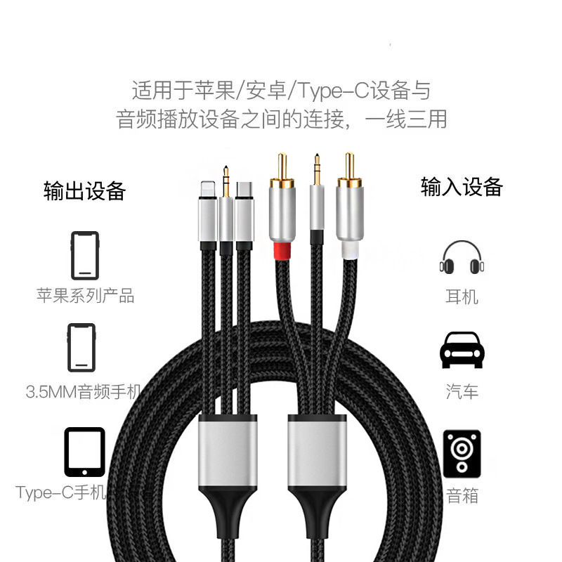 공장 직접 다기능 오디오 라인 3.5mmtypec 안드로이드 연결 더블 로터스 RCA 라인 도매 3 점 3스토어 가기