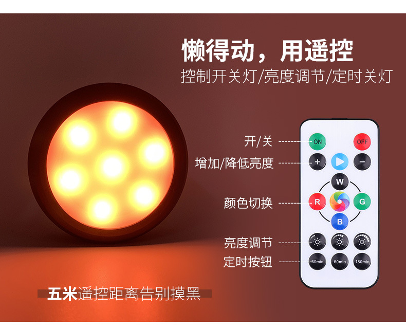 1灯1遥控包装尺寸:9cm*4cm*8.2cm,包装重量:0.1kg,外包装规格:52cm*38.5cm*27cm(144套/箱)