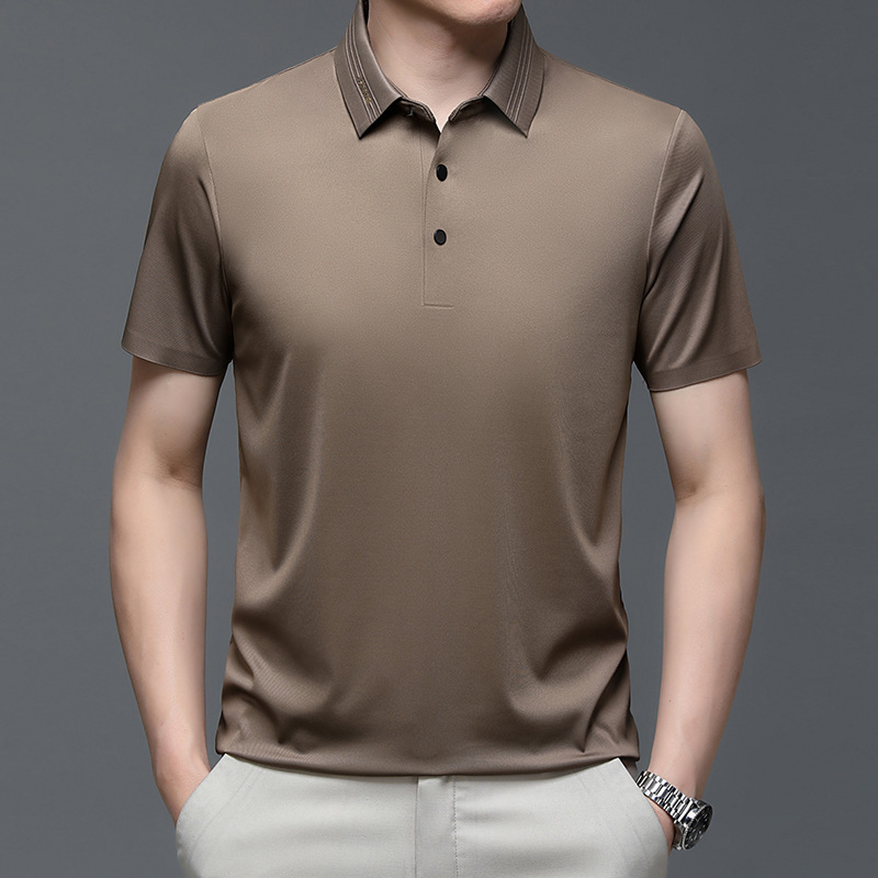 2023年夏季新款翻领短袖纯色POLO衫冰丝无痕时尚休闲中年男士T恤