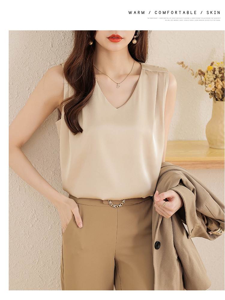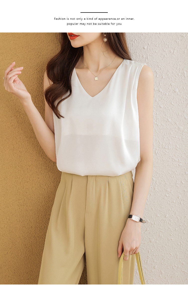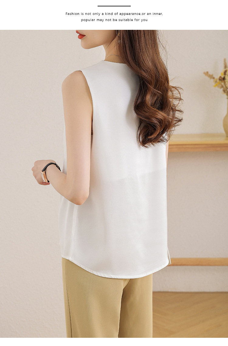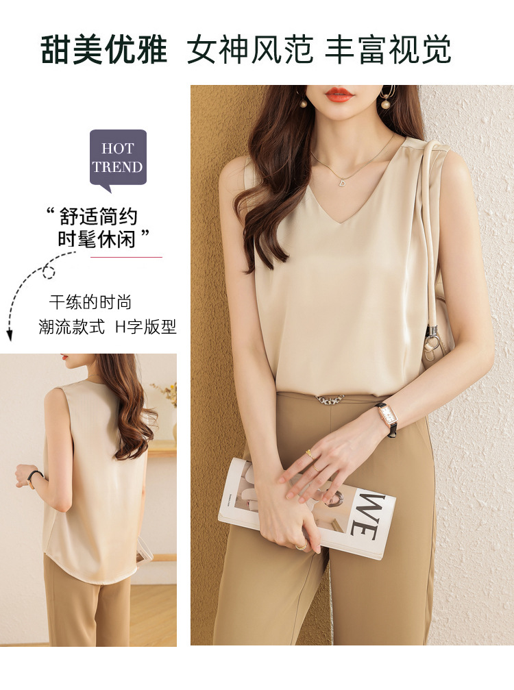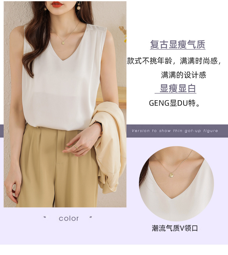 화이트 새틴 조끼 여자의 2023 여름 새로운 V-넥 민소매 세트 슬링 내부 쉬폰 셔츠 최고 여성스토어 가기