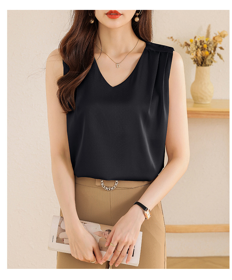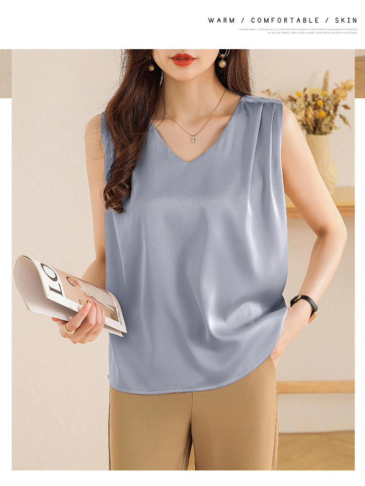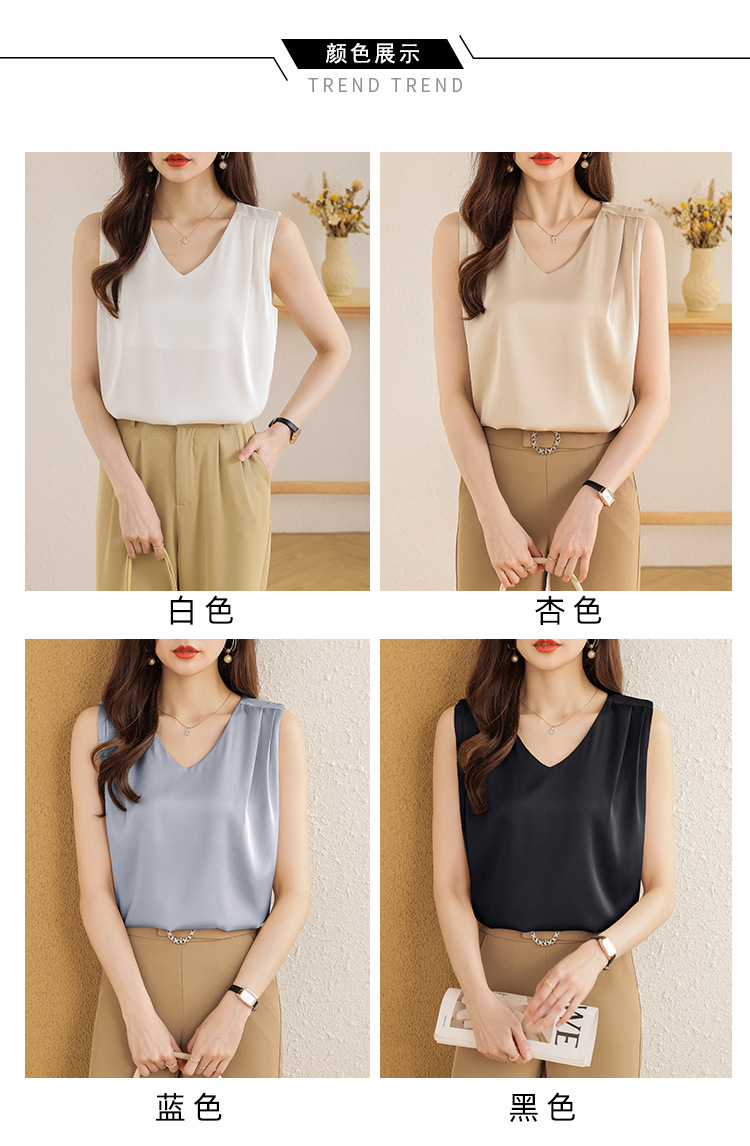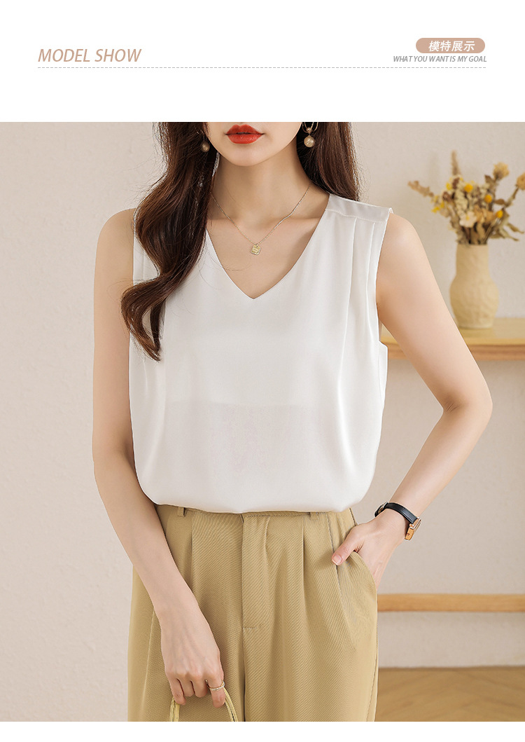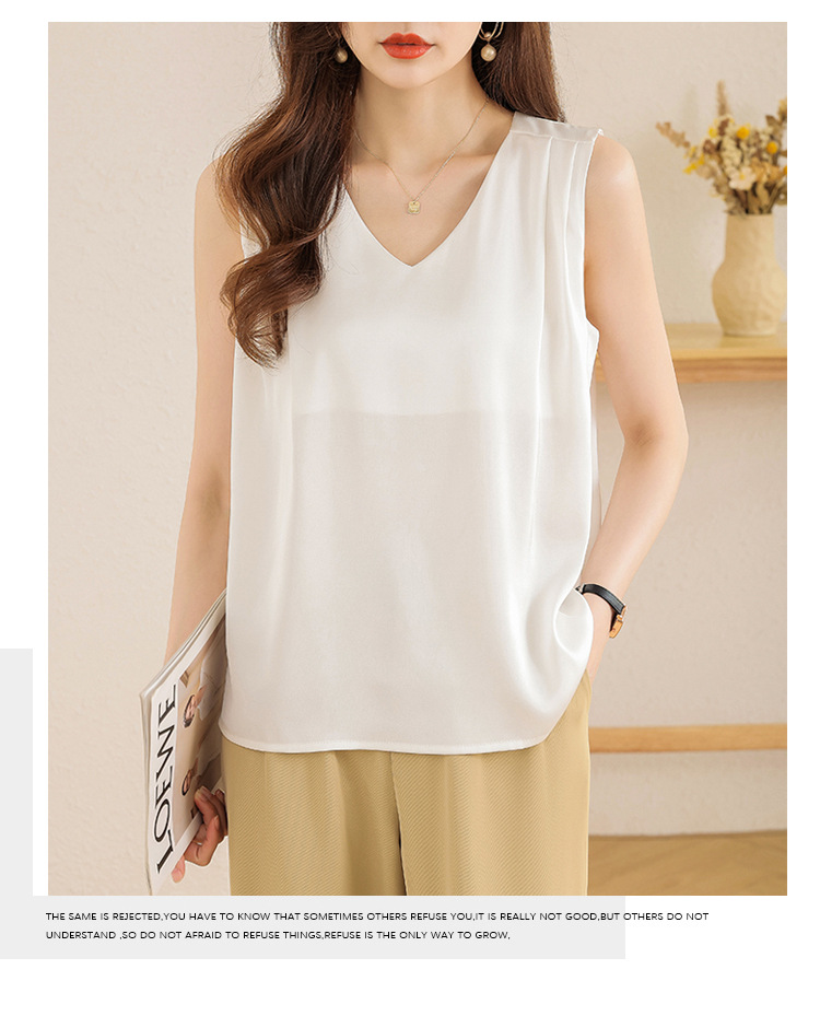 화이트 새틴 조끼 여자의 2023 여름 새로운 V-넥 민소매 세트 슬링 내부 쉬폰 셔츠 최고 여성스토어 가기