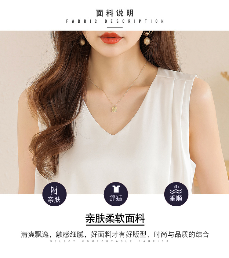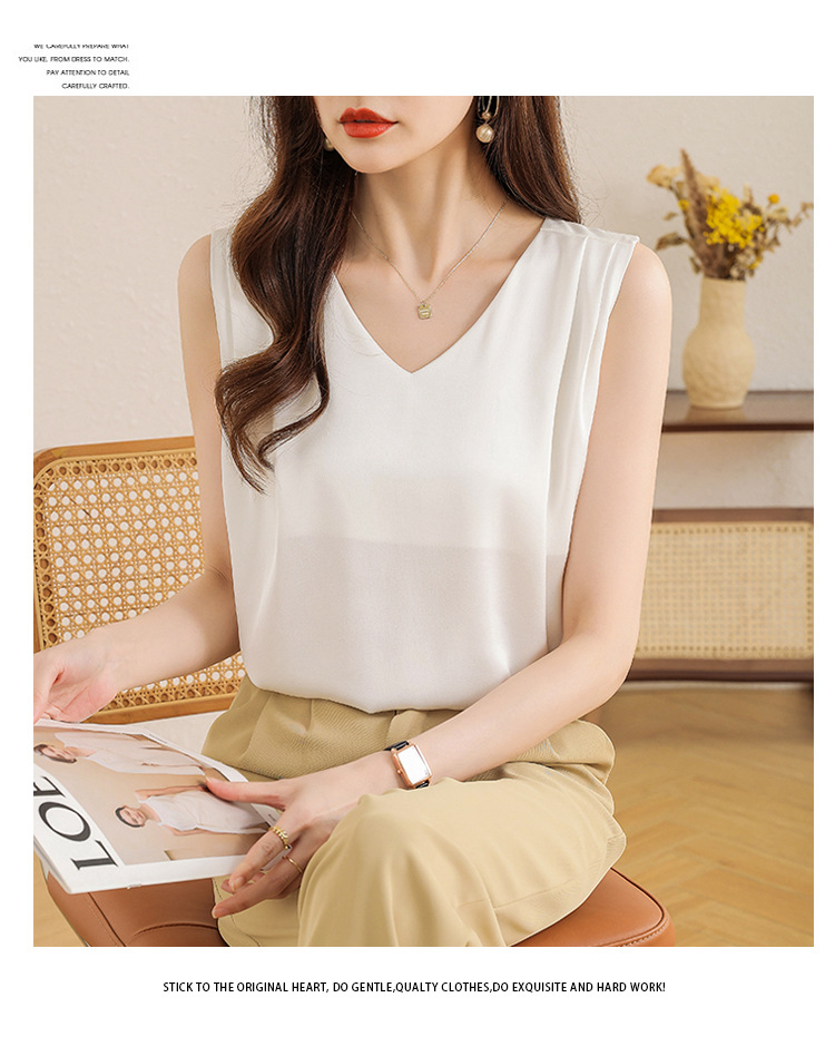 화이트 새틴 조끼 여자의 2023 여름 새로운 V-넥 민소매 세트 슬링 내부 쉬폰 셔츠 최고 여성