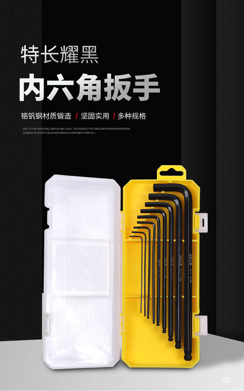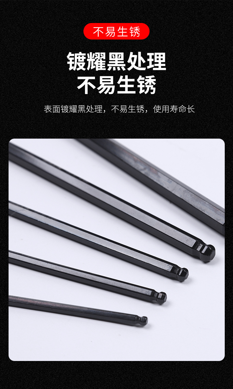 제조업체 도매 특수 길이 연장 블랙 육각 렌치 9피스 볼 헤드 크롬 바나듐 강철 육각 렌치 세트