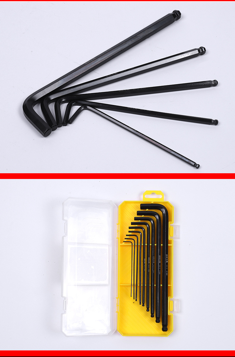 제조업체 도매 특수 길이 연장 블랙 육각 렌치 9피스 볼 헤드 크롬 바나듐 강철 육각 렌치 세트스토어 가기
