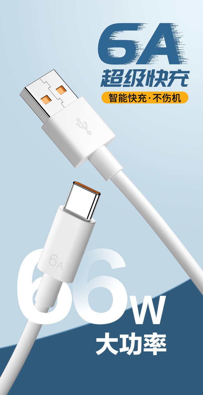 Type-c66w 고속 충전 데이터 라인은 화웨이 Xiaomi oppovovo 안드로이드에 적합합니다 애플 플래시 충전 라인스토어 가기
