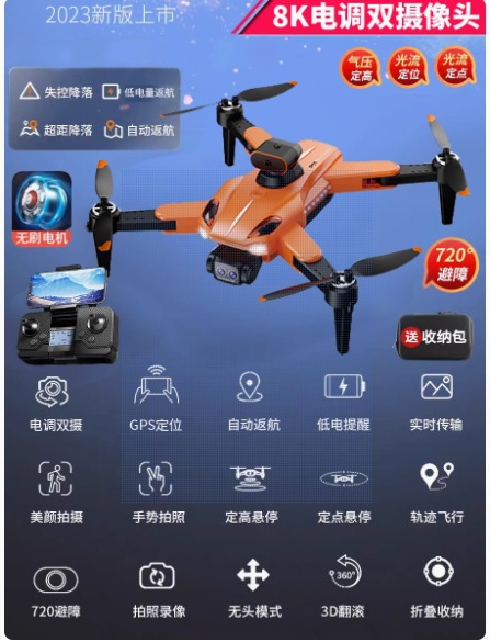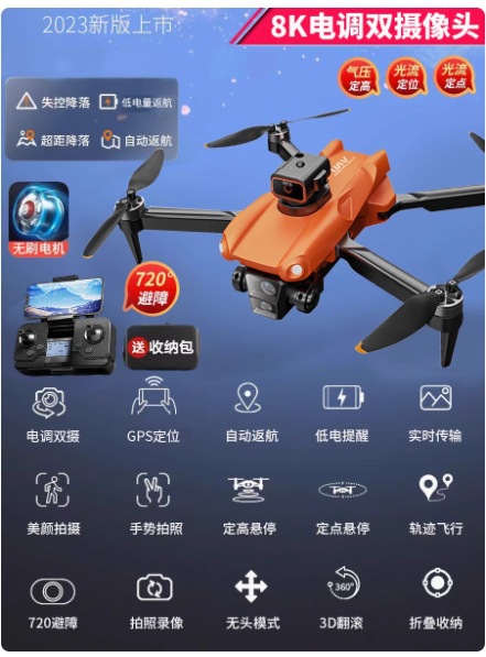 • (GPS 글로벌 포지셔닝) 초대형 오렌지/8K 울트라 클리어 브러시리스 7레벨 바람 저항/원격 제어 거리 5000m GPS 고정점 자동 복귀