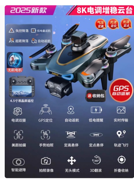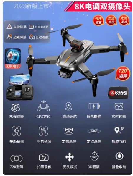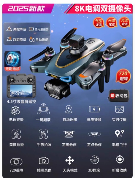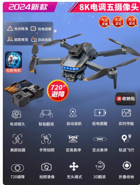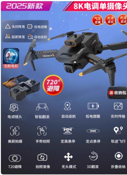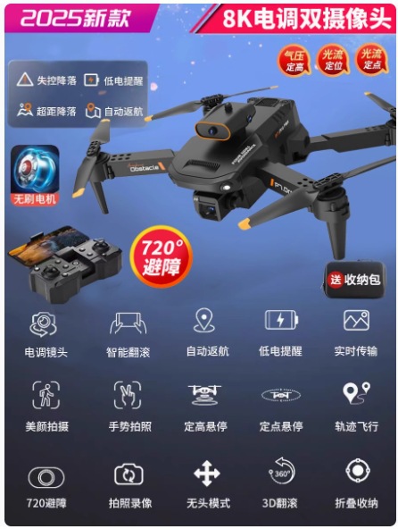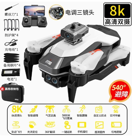 • [카메라 3대] 스트로브 라이트*8K HD [540°장애물 회피 + 공중부양 안정화] 원클릭 복귀