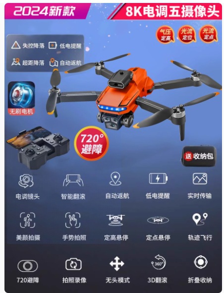 • 전동 조절식 렌즈】핫한 신모델☆8K 5개 카메라[540°종합 장애물 회피 + 정품 배터리] [광학 흐름 포지셔닝] 주황색 광학 흐름 포지셔닝 1