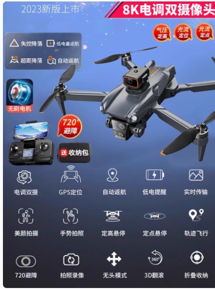 • 8K HD 듀얼 카메라 스위칭[360°장애물 회피/광학 흐름 안정화] 원클릭 복귀