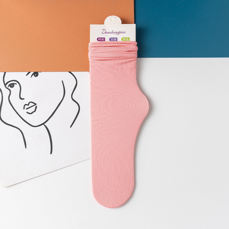 堆堆袜夏天袜子女薄款纯色休闲无骨袜吸汗舒适透气中筒月子袜批发