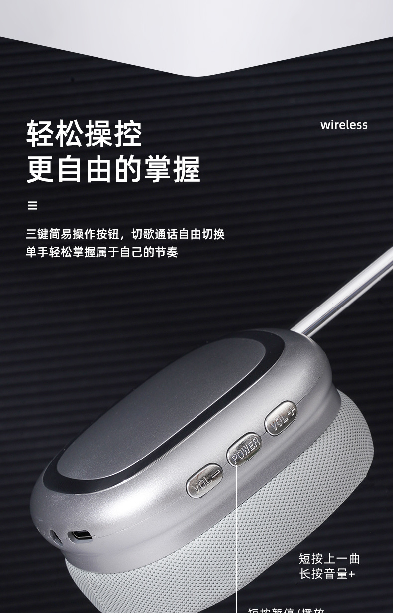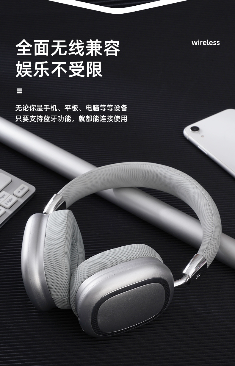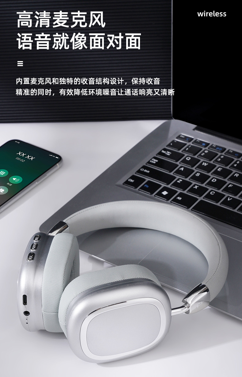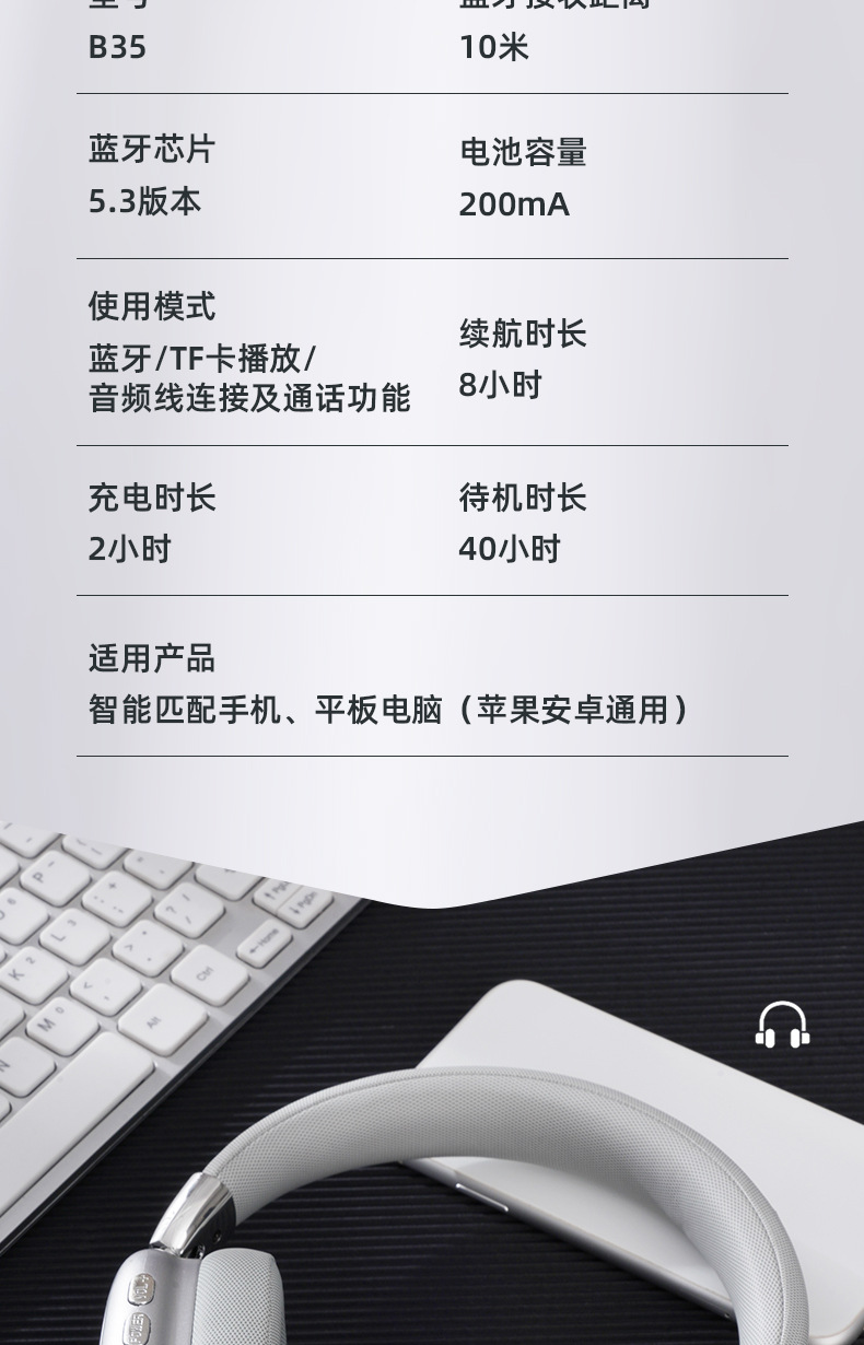 本产品使用了新型蓝牙5.3协议,ty-c充电插孔。皮革头梁,可折叠收纳