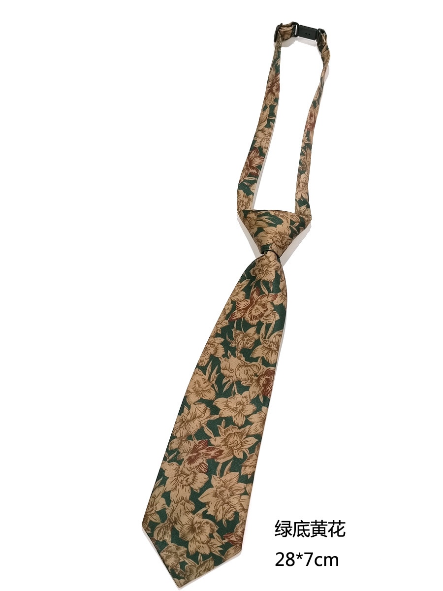 빈티지 플로럴 플로럴 프린트 여성의 작은 넥타이 학생 휴 모든 매치 장식 다크 다크 그린 카키 꽃 노히트 남성과 어린이를위한