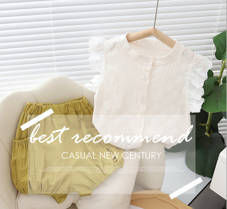 여자 여름 세트 새로운 여름 옷 중소 어린이 라운드 넥 반팔 탑 반바지 투피스 세트 얇은 통기성 in