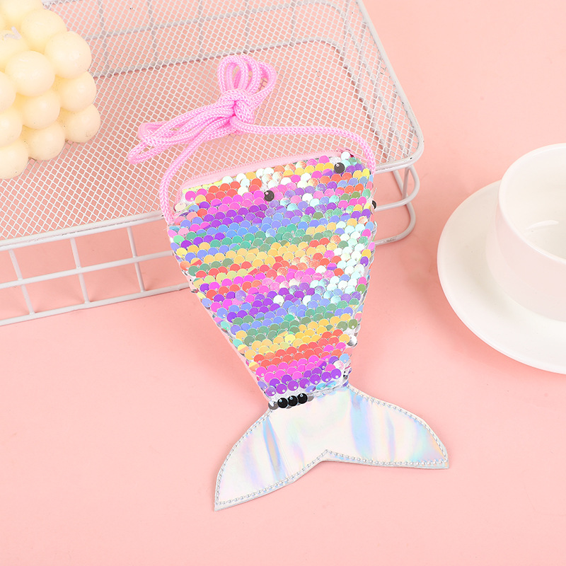 인어 장식 조각 동전 지갑 창조적 인 큰 물고기 꼬리 동전 가방 유치원 소녀 어린이 귀여운 크로스 바디 가방스토어 가기