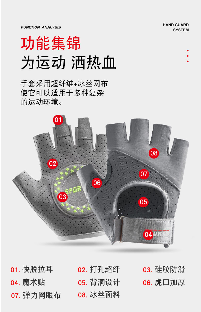 피트니스 장갑 반 손가락 얇은 스포츠 훈련 장비 수평 바 미끄럼 방지 고치 마모 방지 승마 A03-QBJS