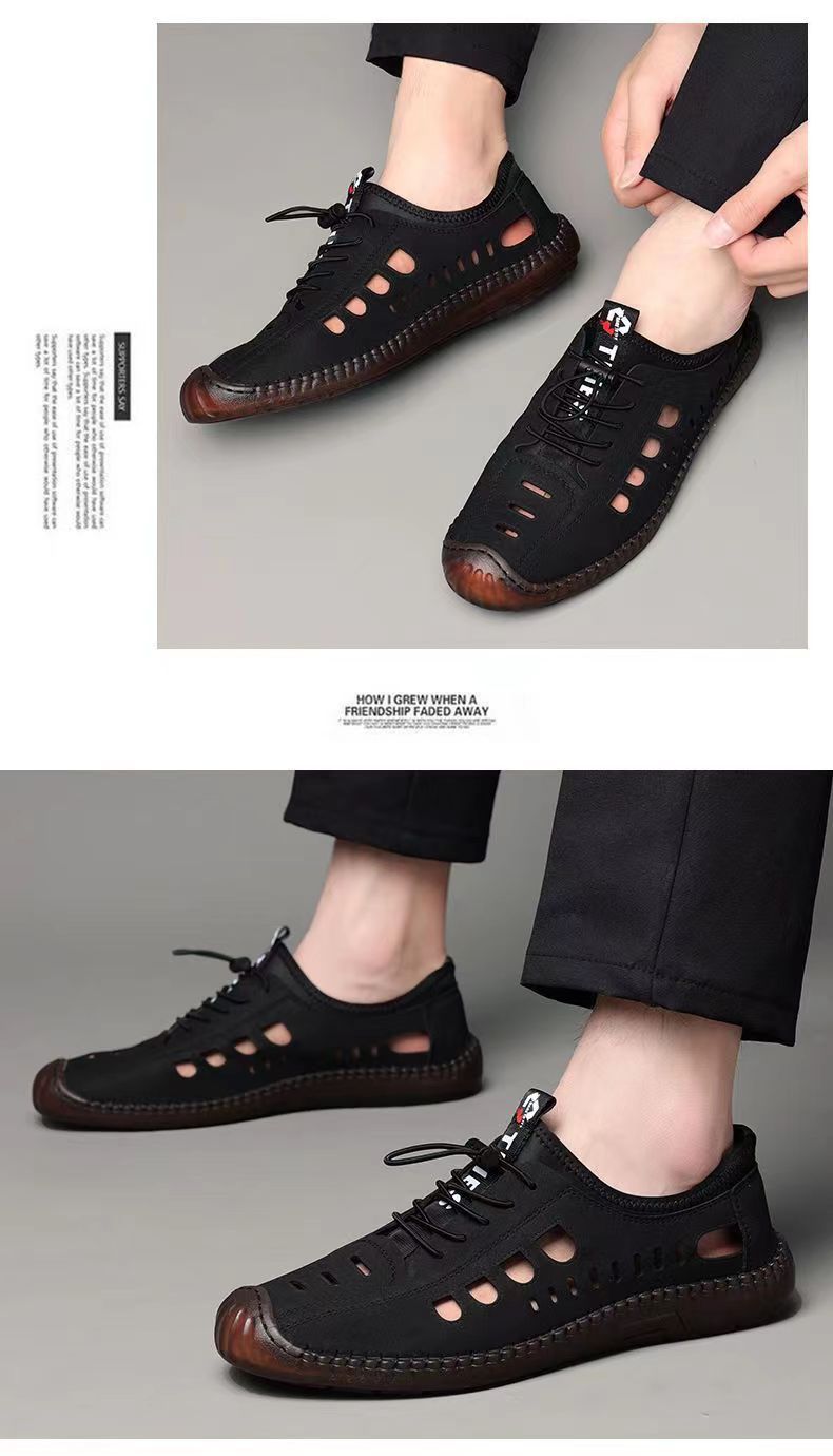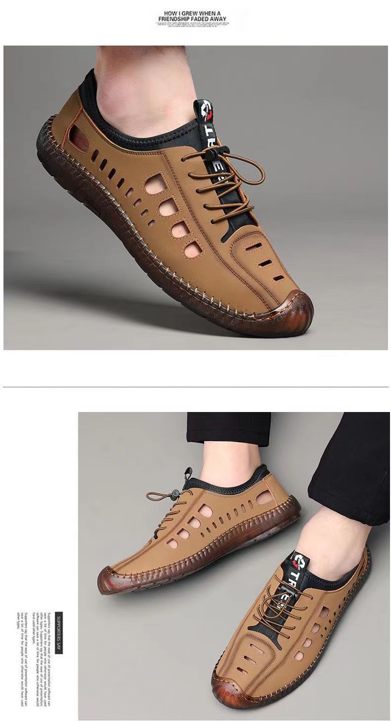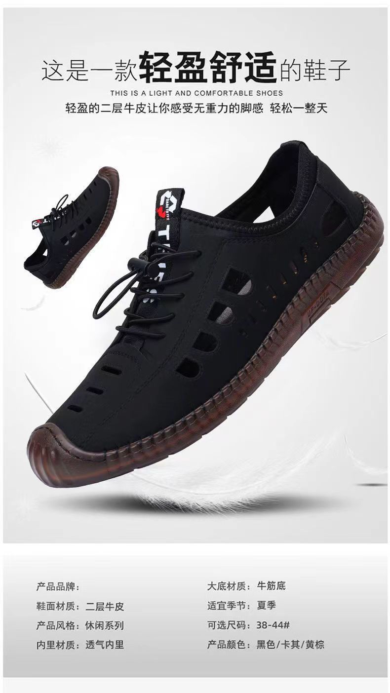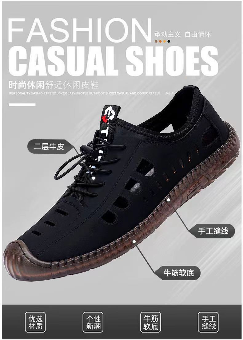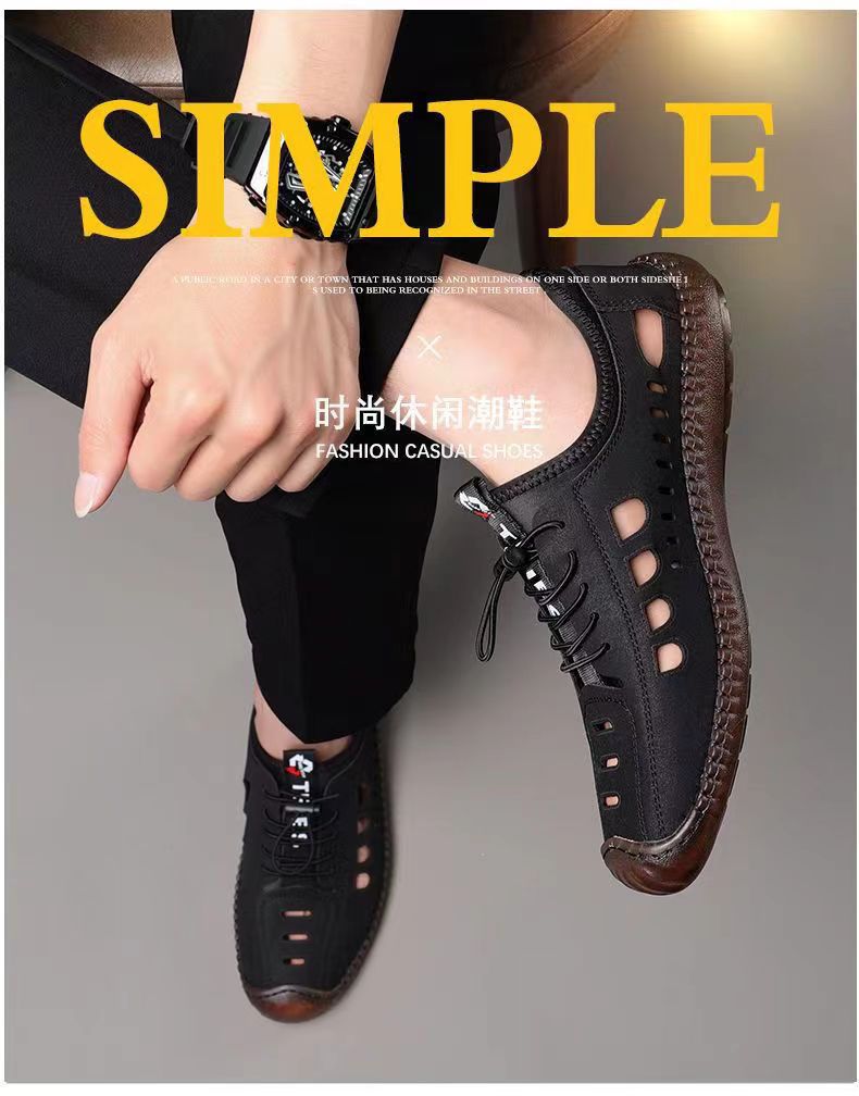 남성용 가죽 신발 샌들 구멍 신발 중공 트렌디 한 쇠고기 밑창 통기성 슬립온 캐주얼 남성 신발스토어 가기