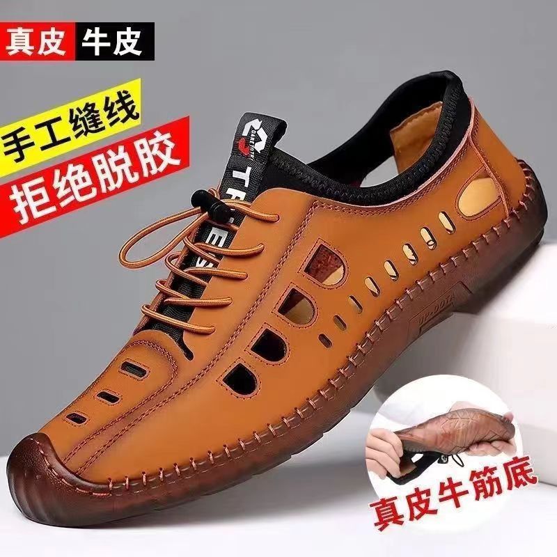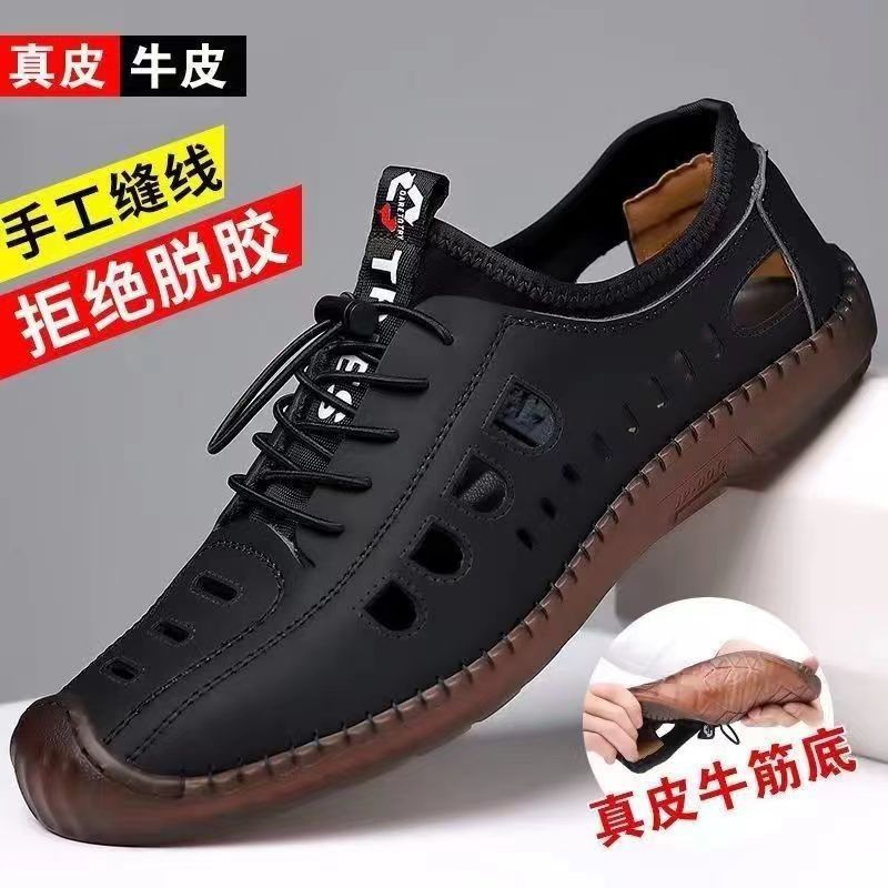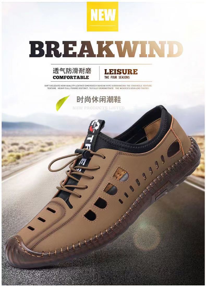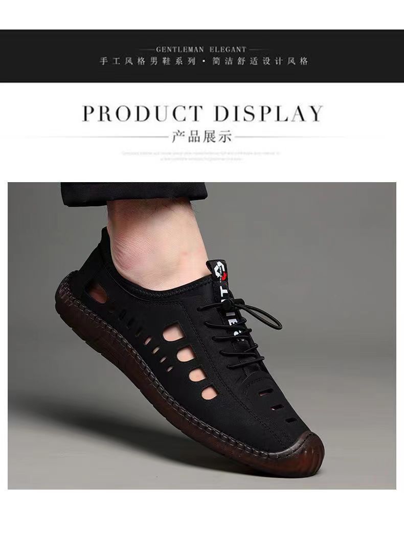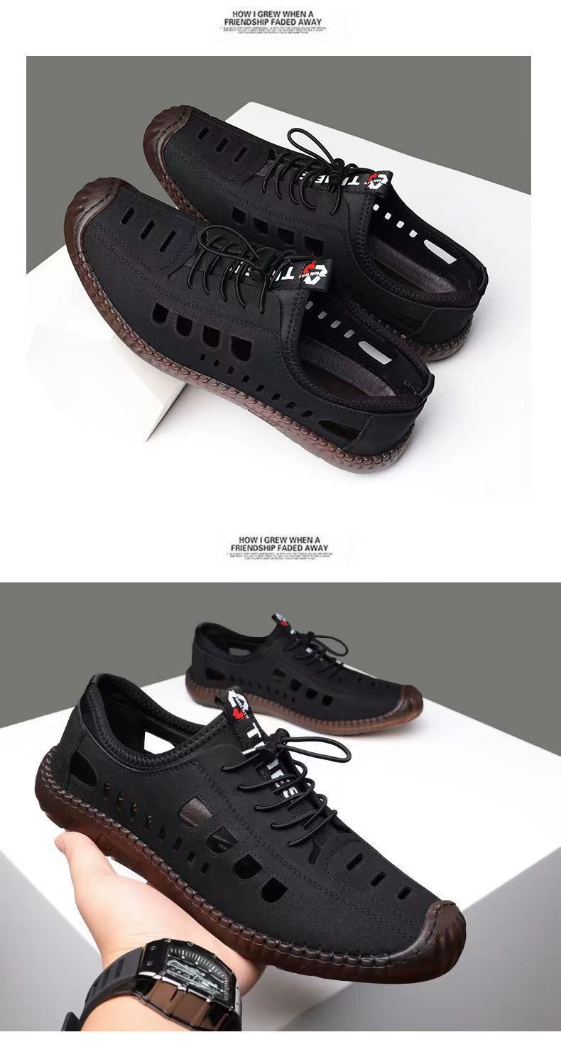 남성용 가죽 신발 샌들 구멍 신발 중공 트렌디 한 쇠고기 밑창 통기성 슬립온 캐주얼 남성 신발스토어 가기