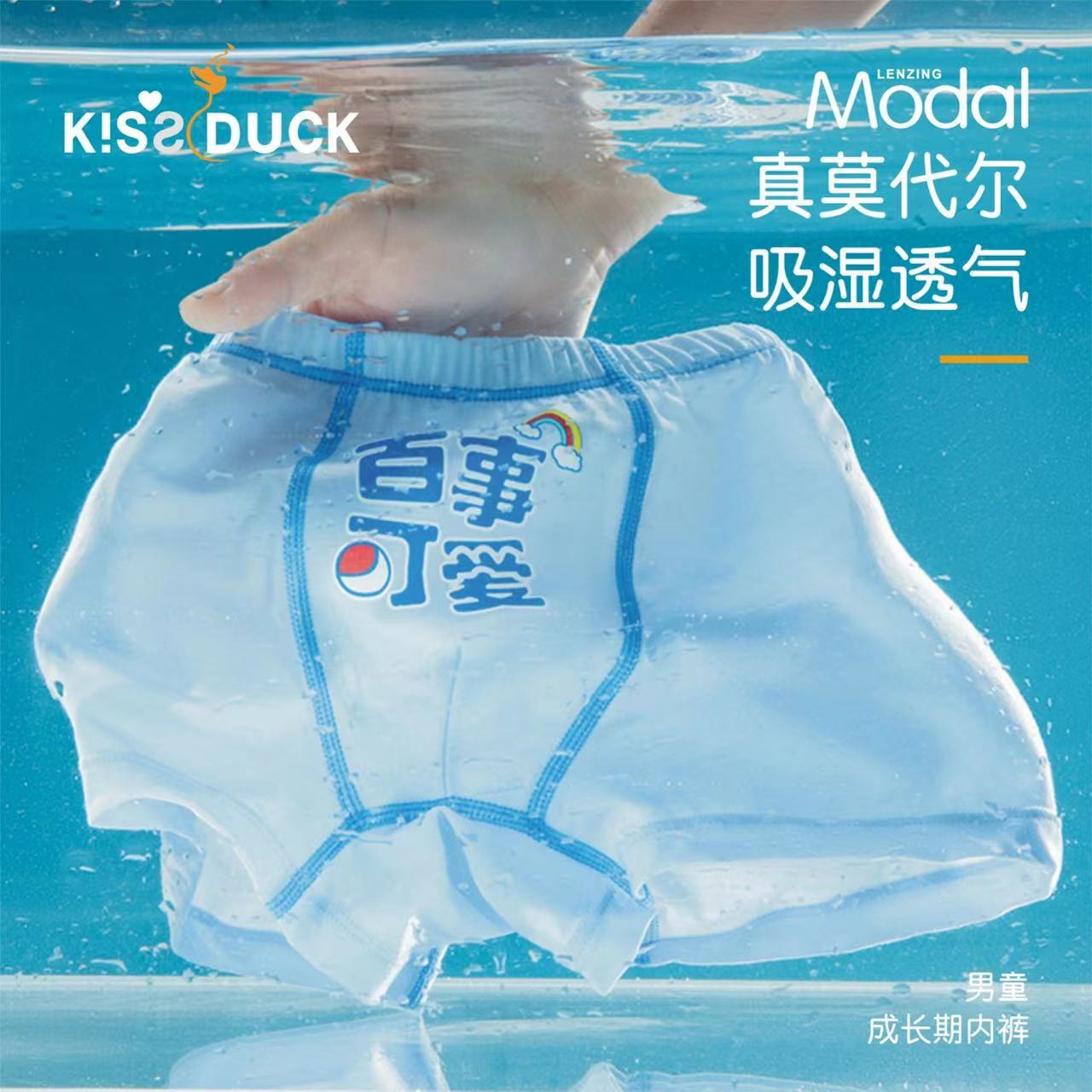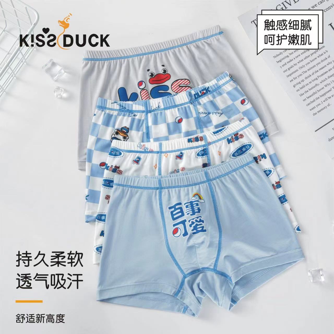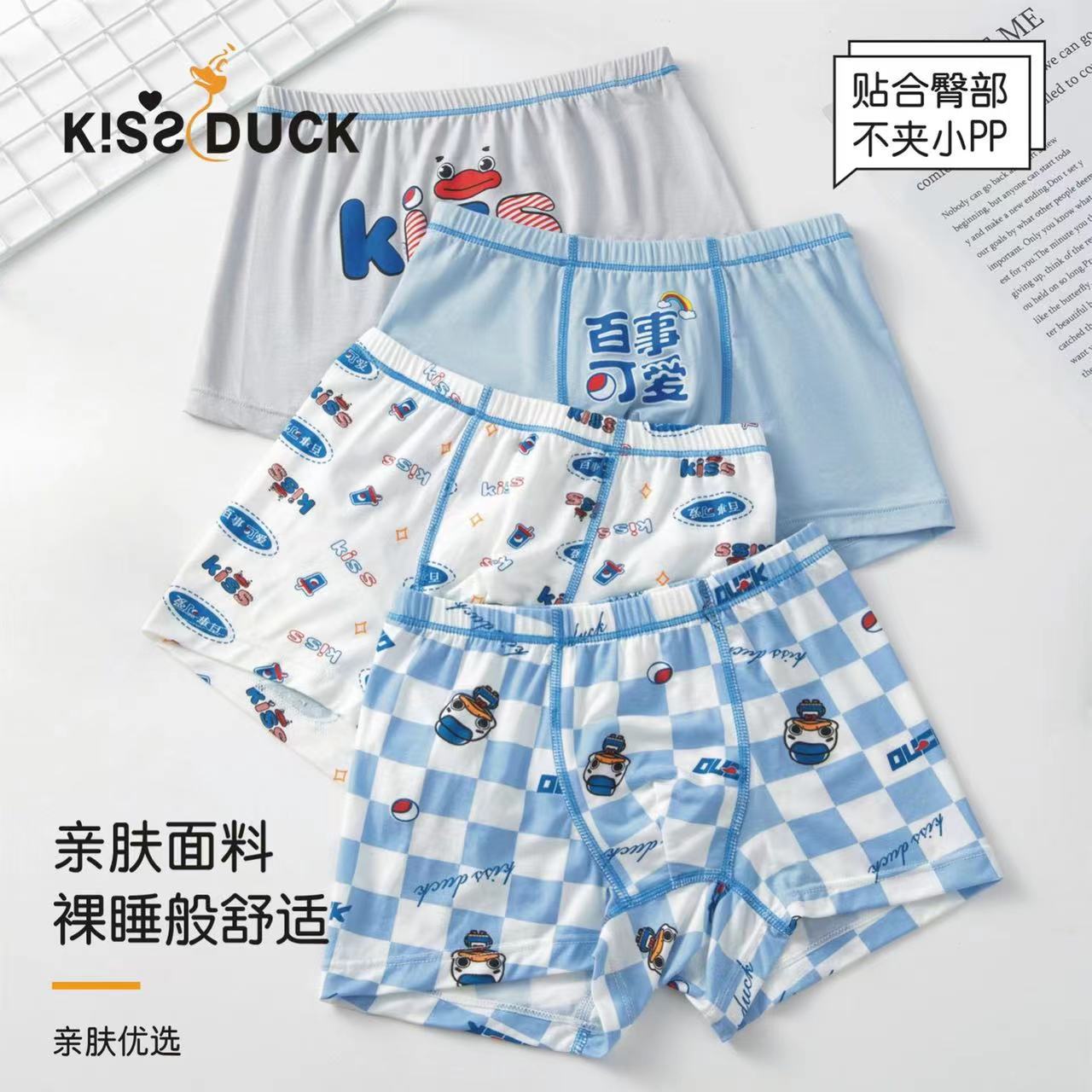 작은 노란 오리 소년 속옷 모달 4 코너 반바지 중대형 어린이 및 초등학생을위한 뼈없는 통기성 만화 복서