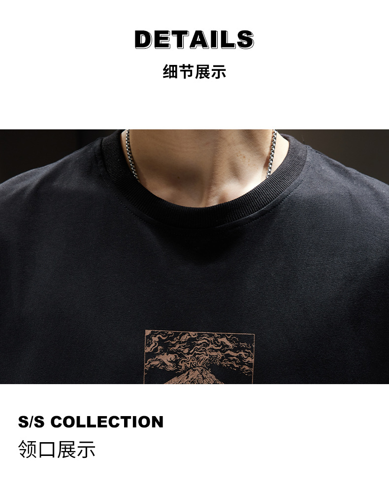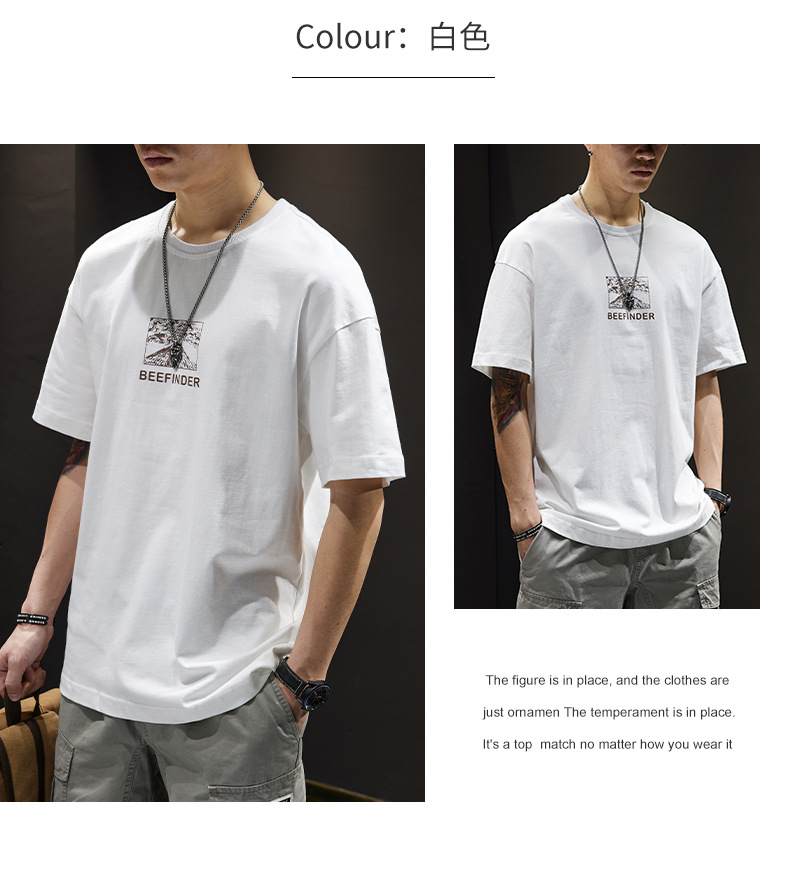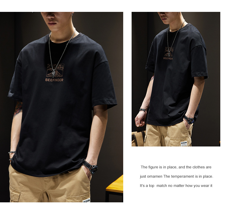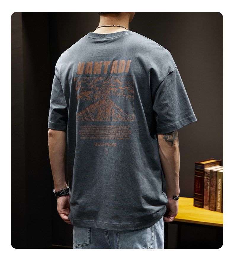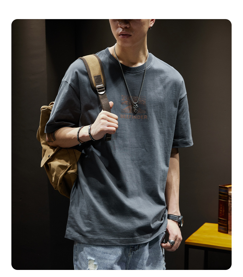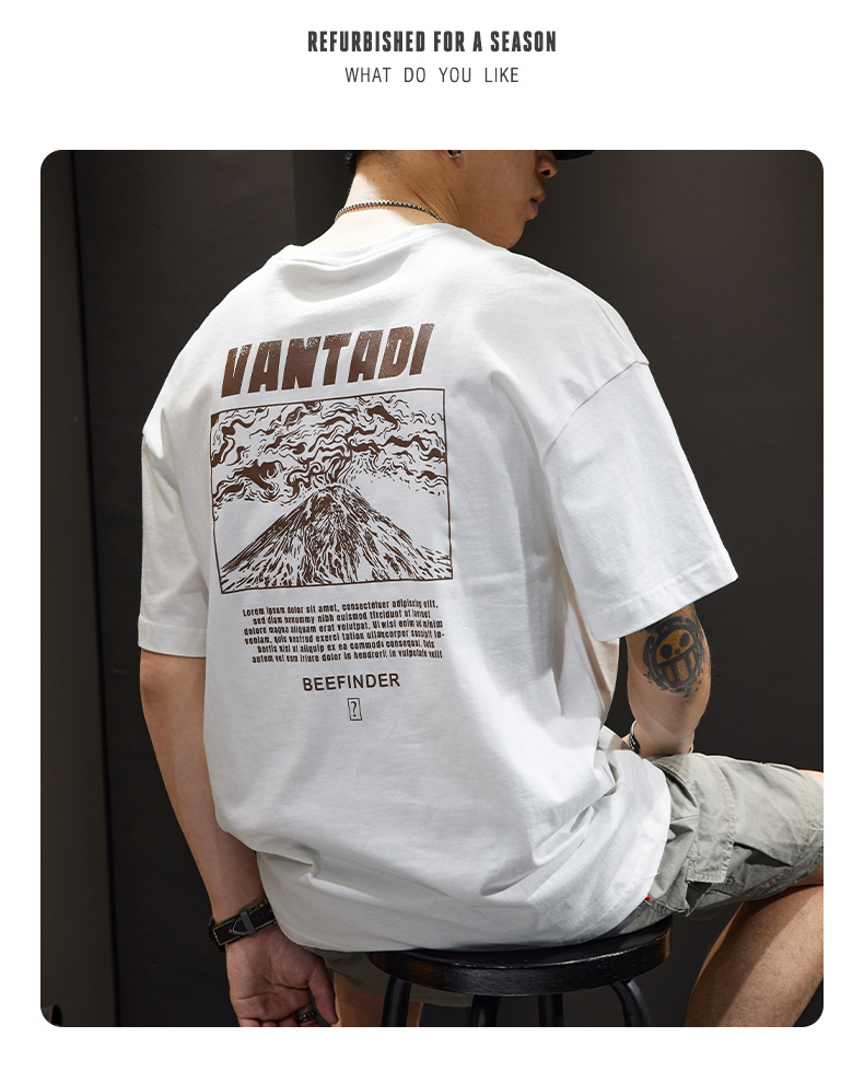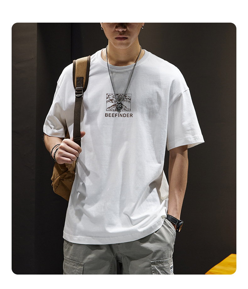 2023 여름 무거운 250g 반팔 티셔츠 남성용 패션 브랜드 일본 느슨한 플러스 사이즈 탑 패션 인 프린트 티셔츠