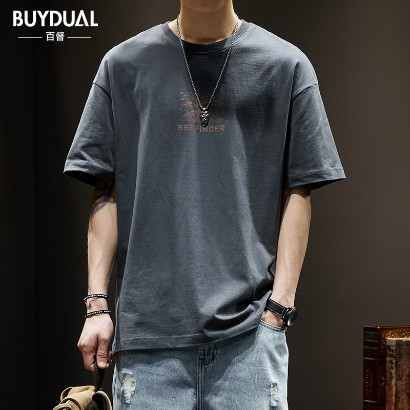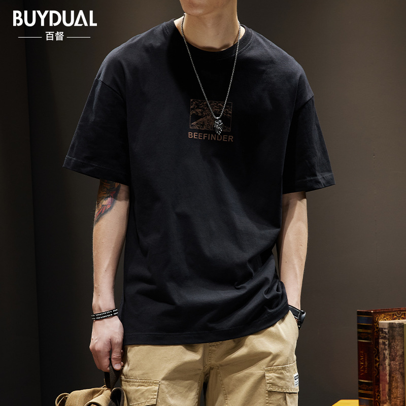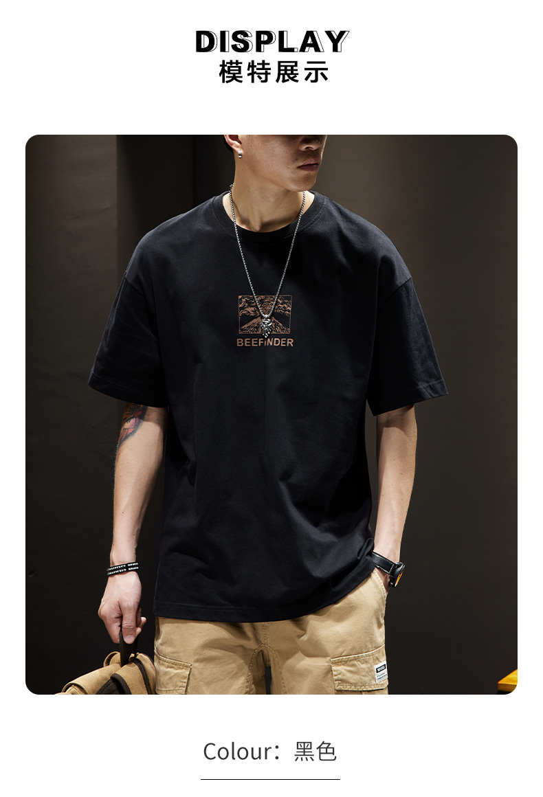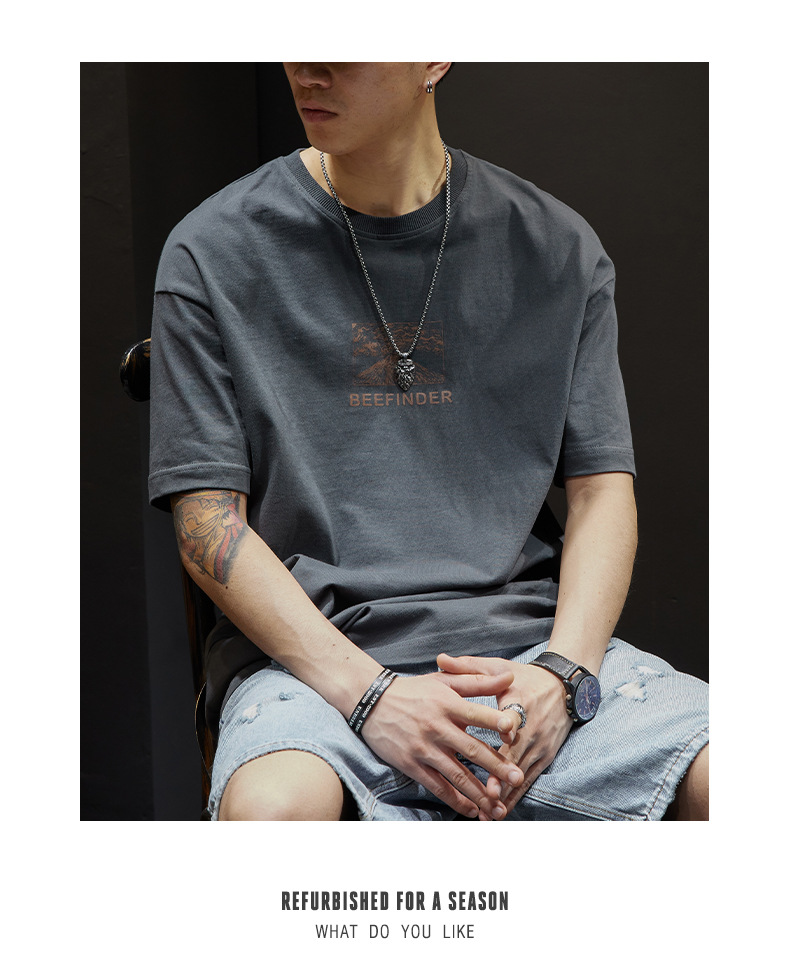 2023 여름 무거운 250g 반팔 티셔츠 남성용 패션 브랜드 일본 느슨한 플러스 사이즈 탑 패션 인 프린트 티셔츠스토어 가기