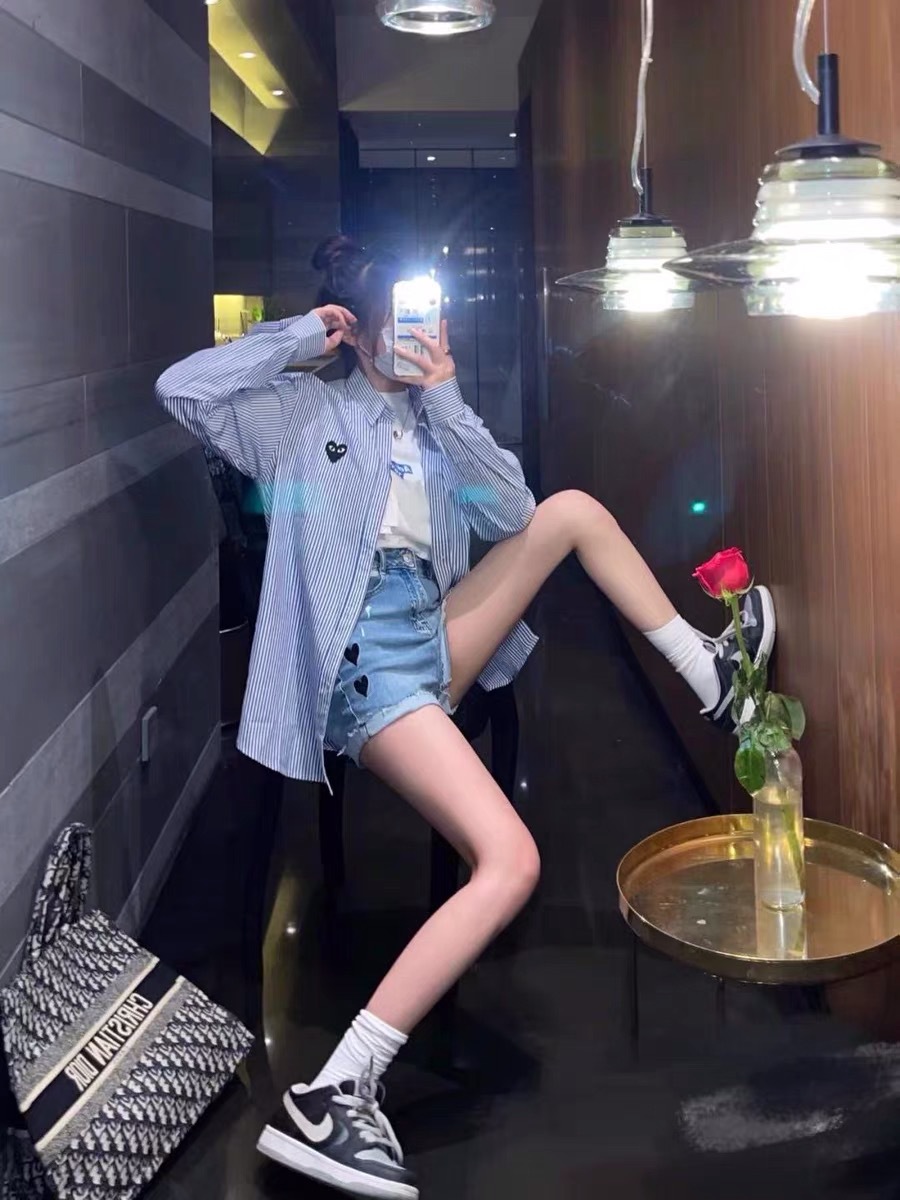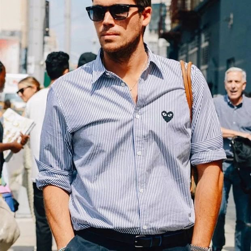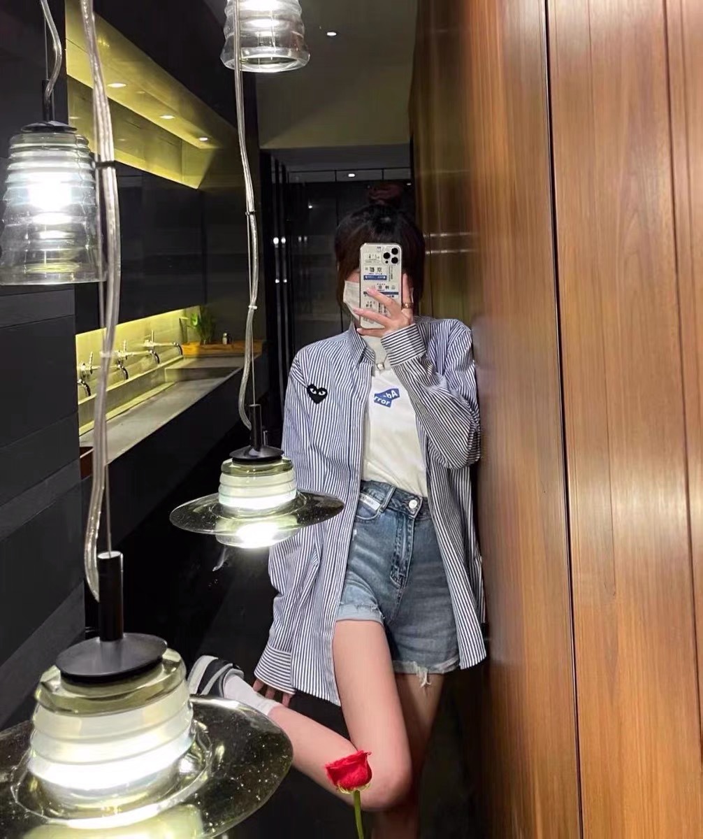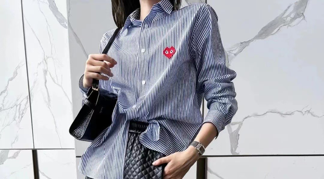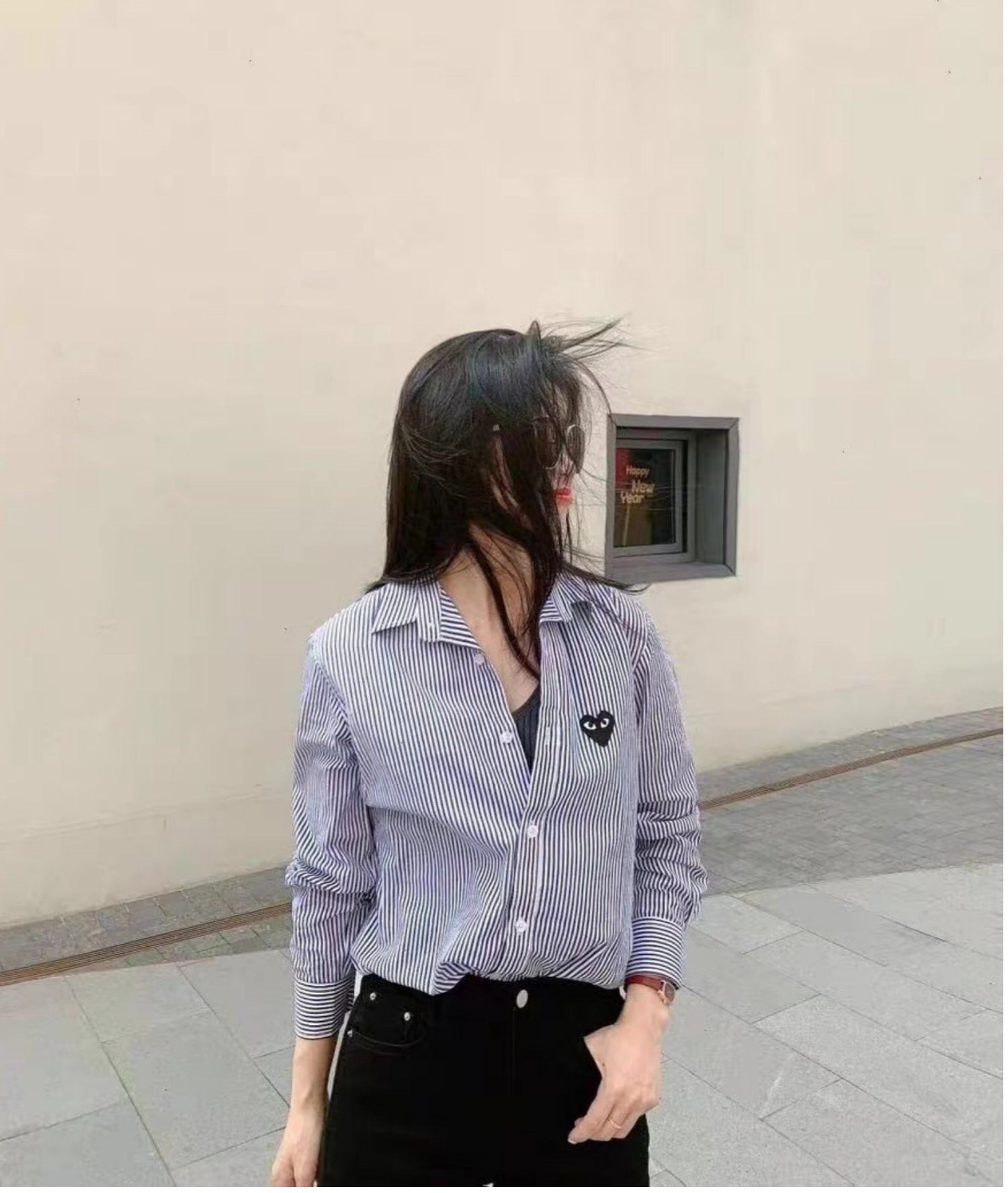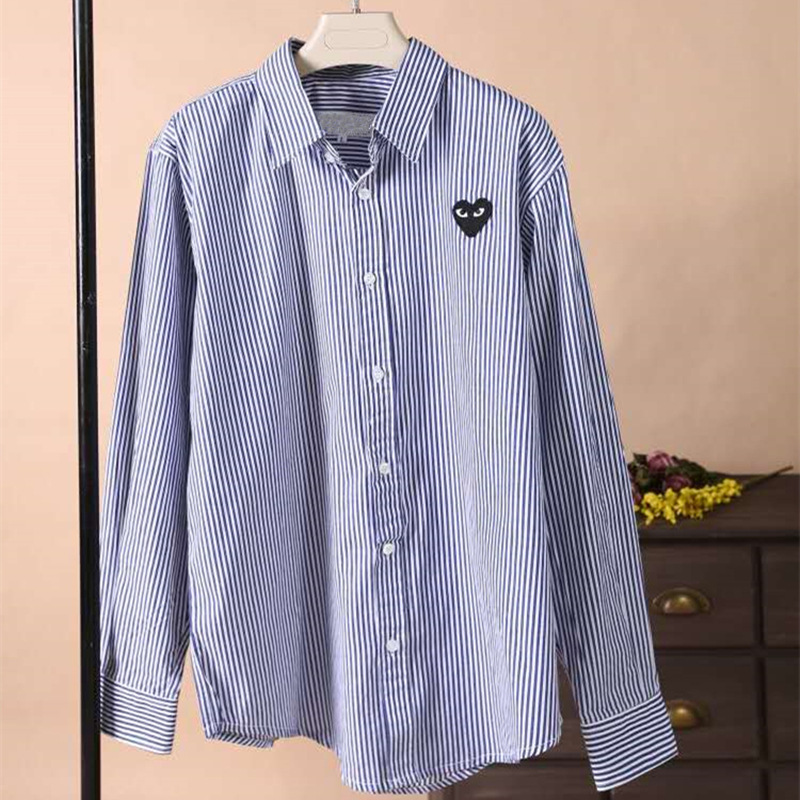 파란색과 흰색 줄무늬 셔츠 보링 자수 재킷 남녀 공용 순면 플레이 긴팔 이너웨어 셔츠 카오쿠 셔츠스토어 가기