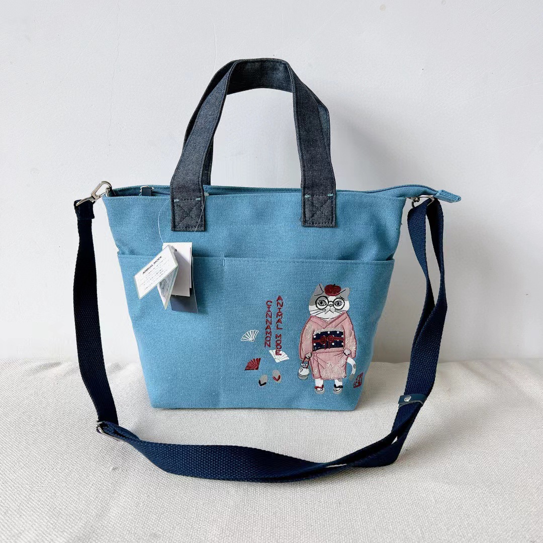 일본 쿠스구루 자수 기모노 고양이 캔버스 크로스백 숄더백 핸드백 쇼핑백 983
