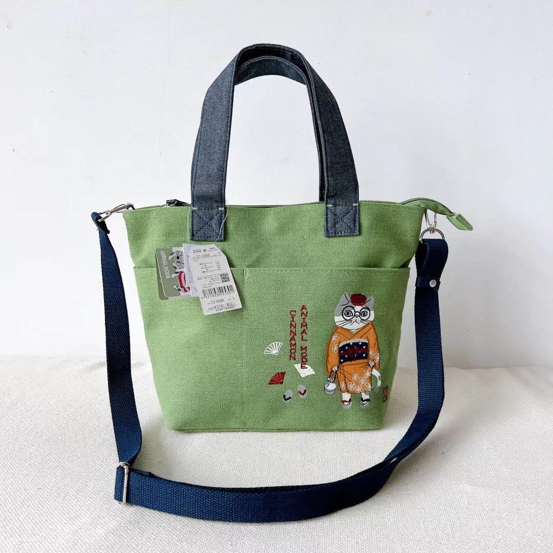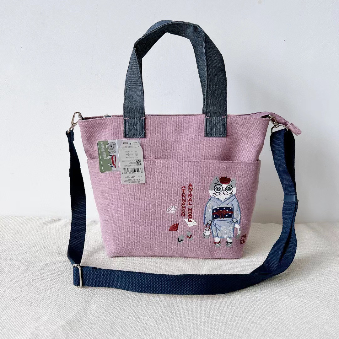 일본 쿠스구루 자수 기모노 고양이 캔버스 크로스백 숄더백 핸드백 쇼핑백 983스토어 가기