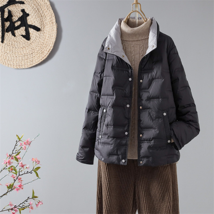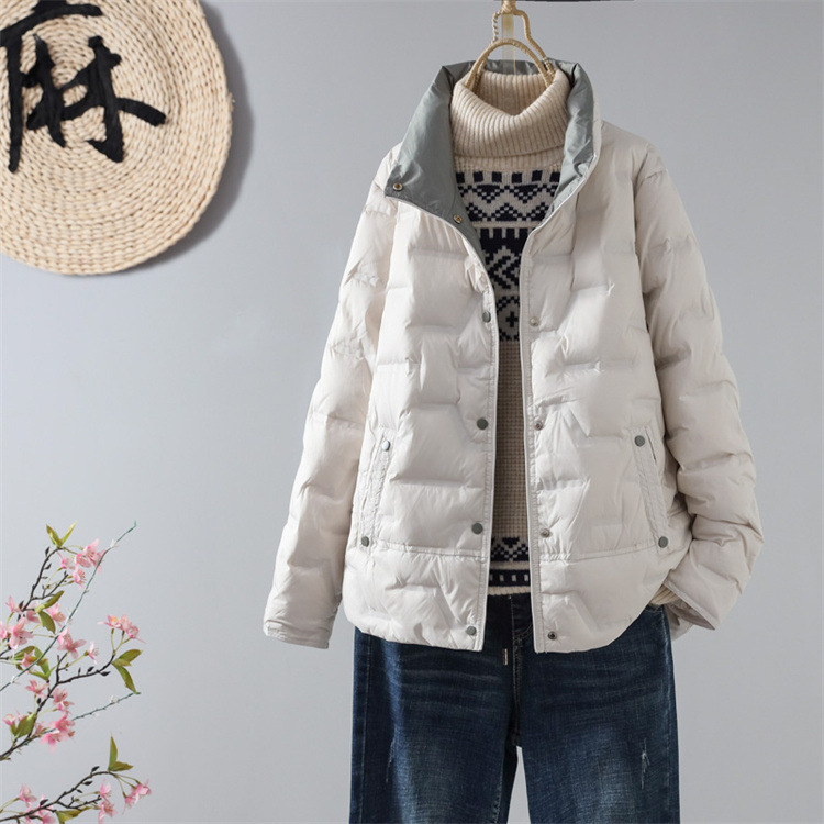 크로스 보더 가을과 겨울 새로운 칼라 캐주얼 화이트 덕 다운 재킷 경량 고무 다운 재킷 여성용 짧은 루즈한 올 매치 코트 트렌디