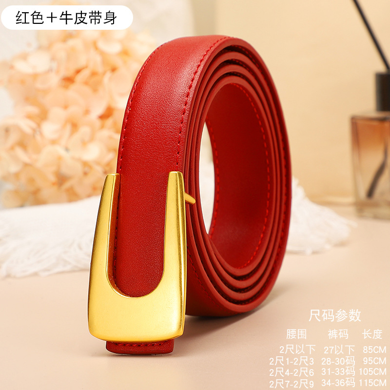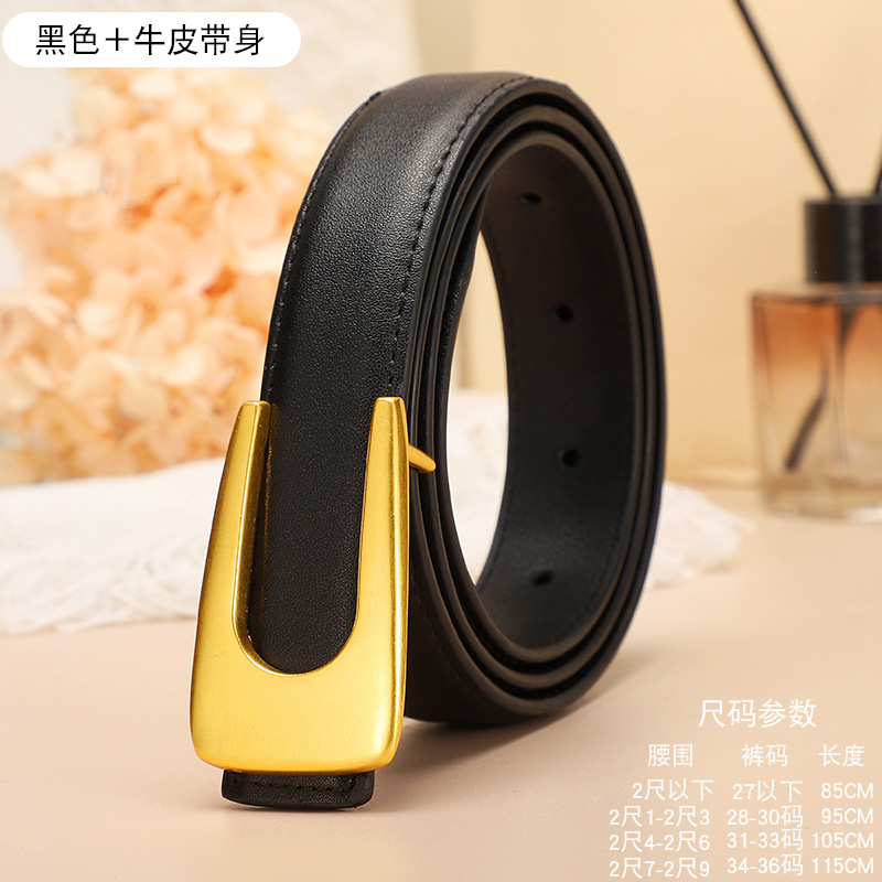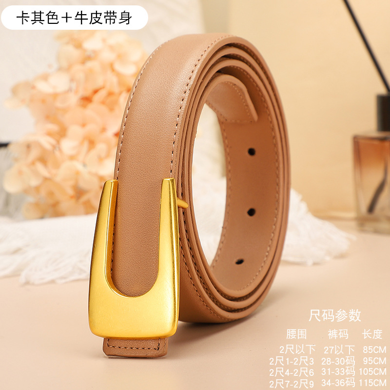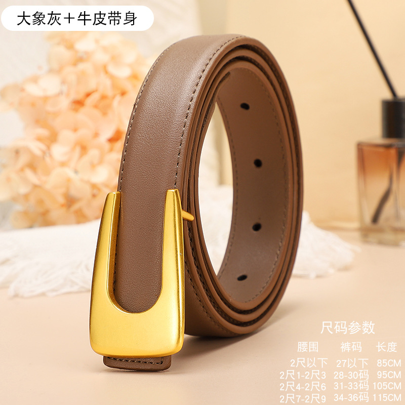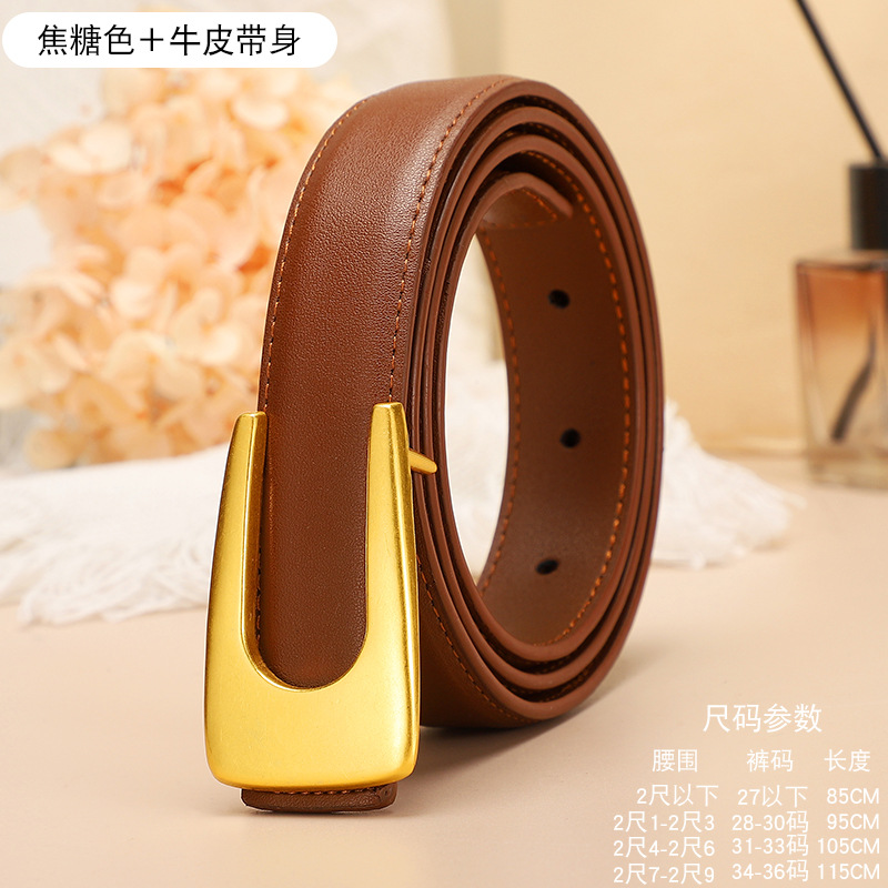 腰带女u形平滑扣百搭牛仔裤ins简约装饰真皮二层复古腰带皮带女