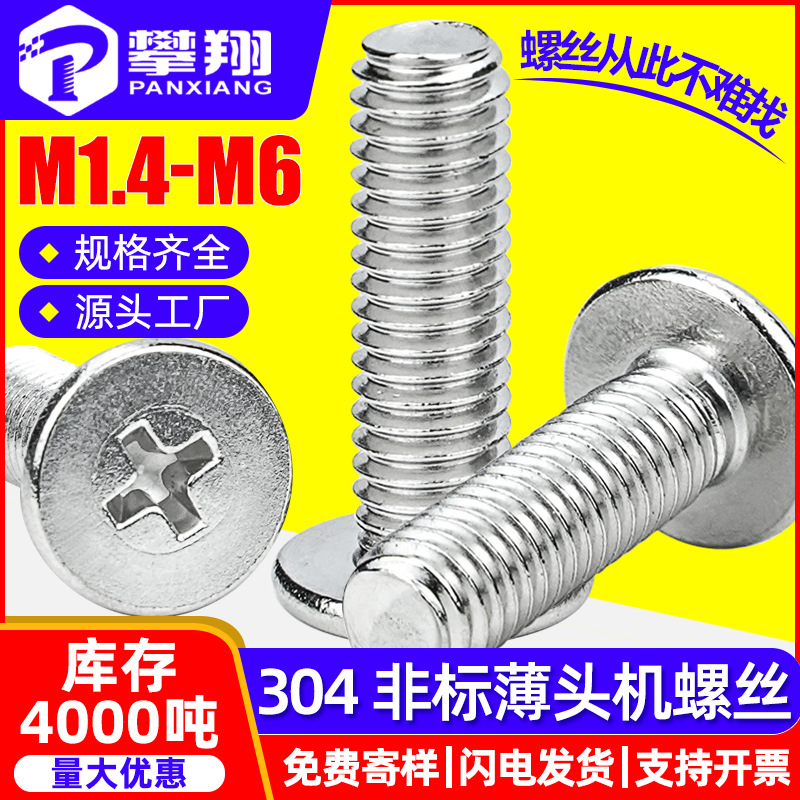 304 스테인레스 스틸 비표준 빅 헤드 플랫 헤드 필립스 스크류 CM 정밀 전자 초박형 크로스 오목한 작은 나사 M2